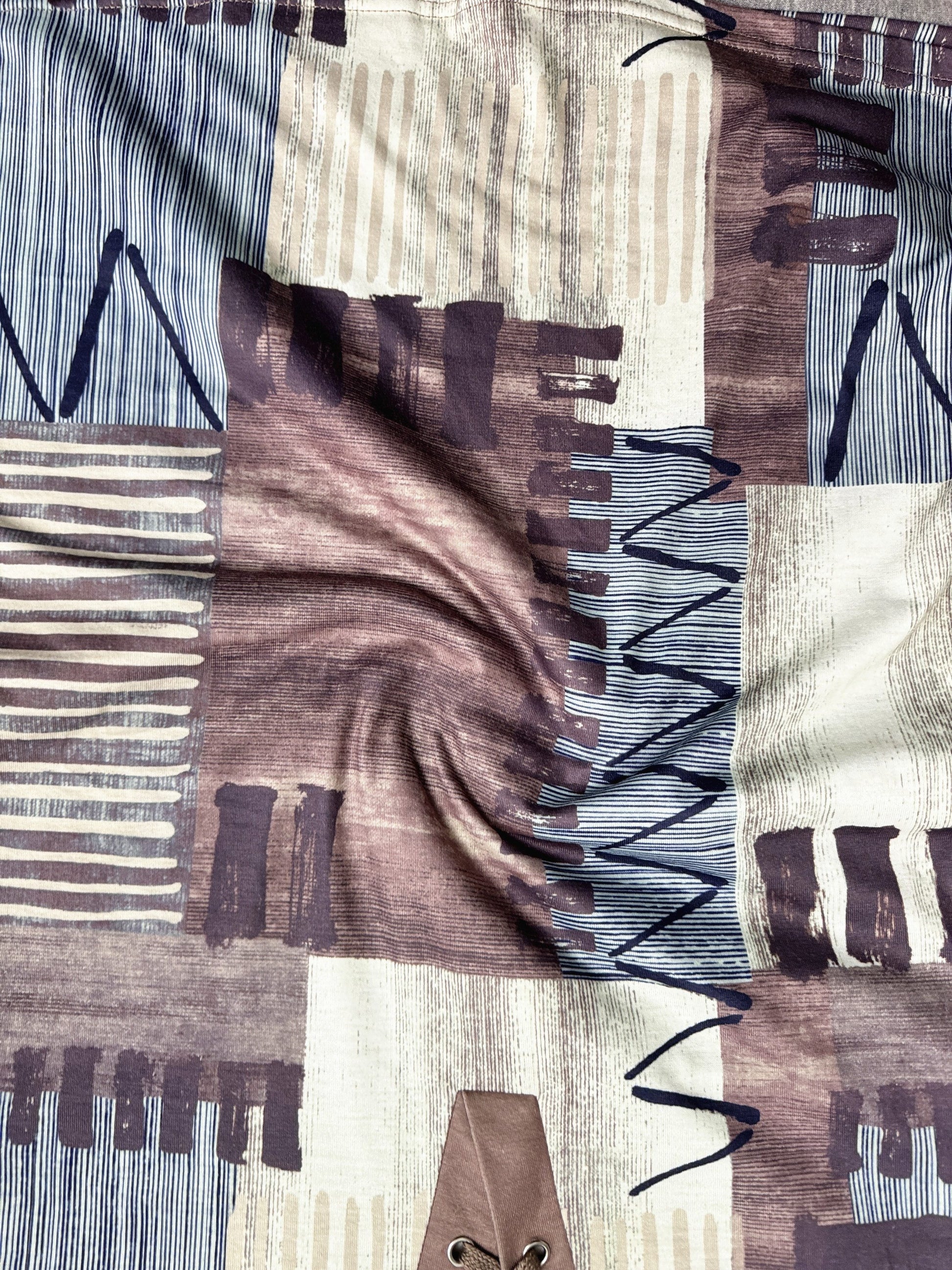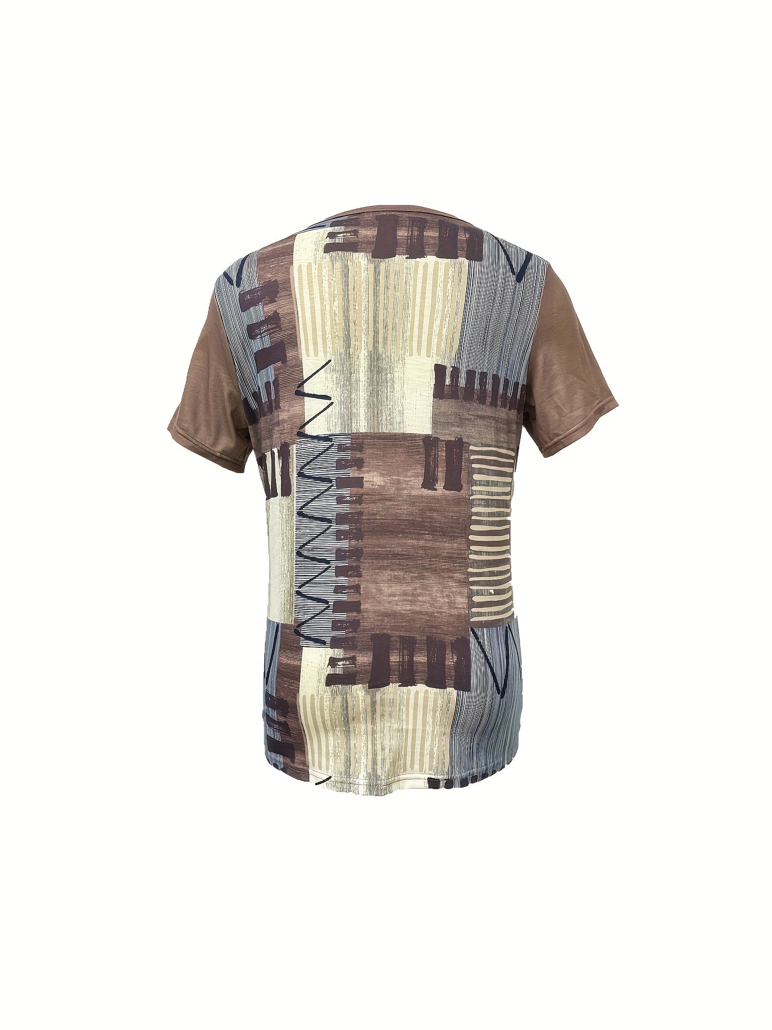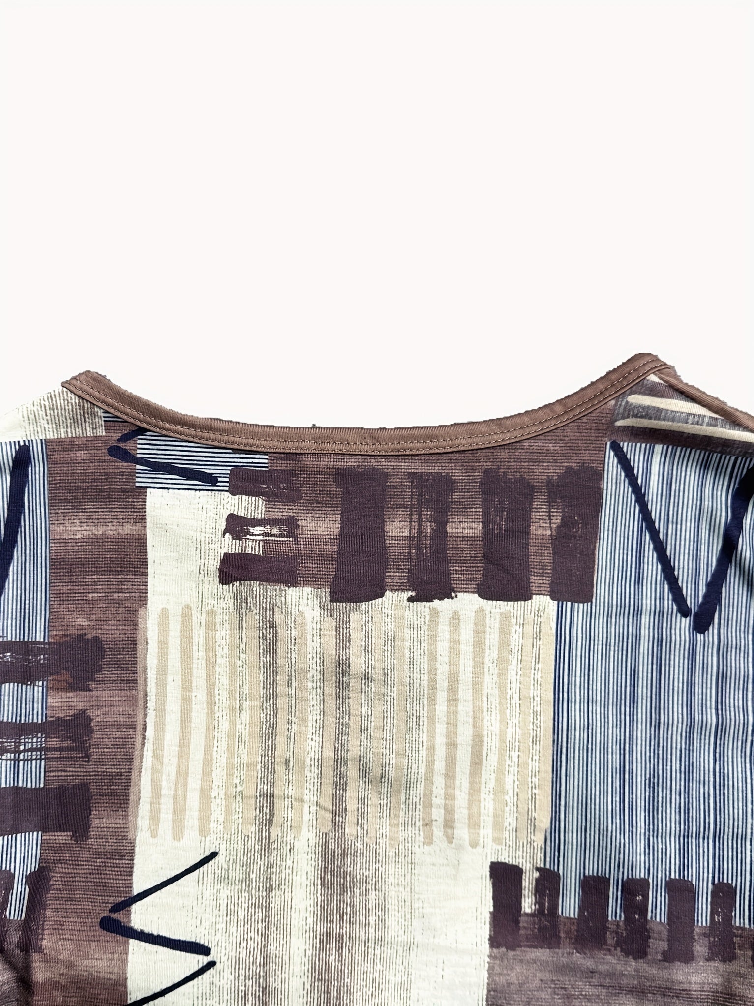 Women's Casual Geometric Print T-Shirt with V-Neck and Lace-Up Detail