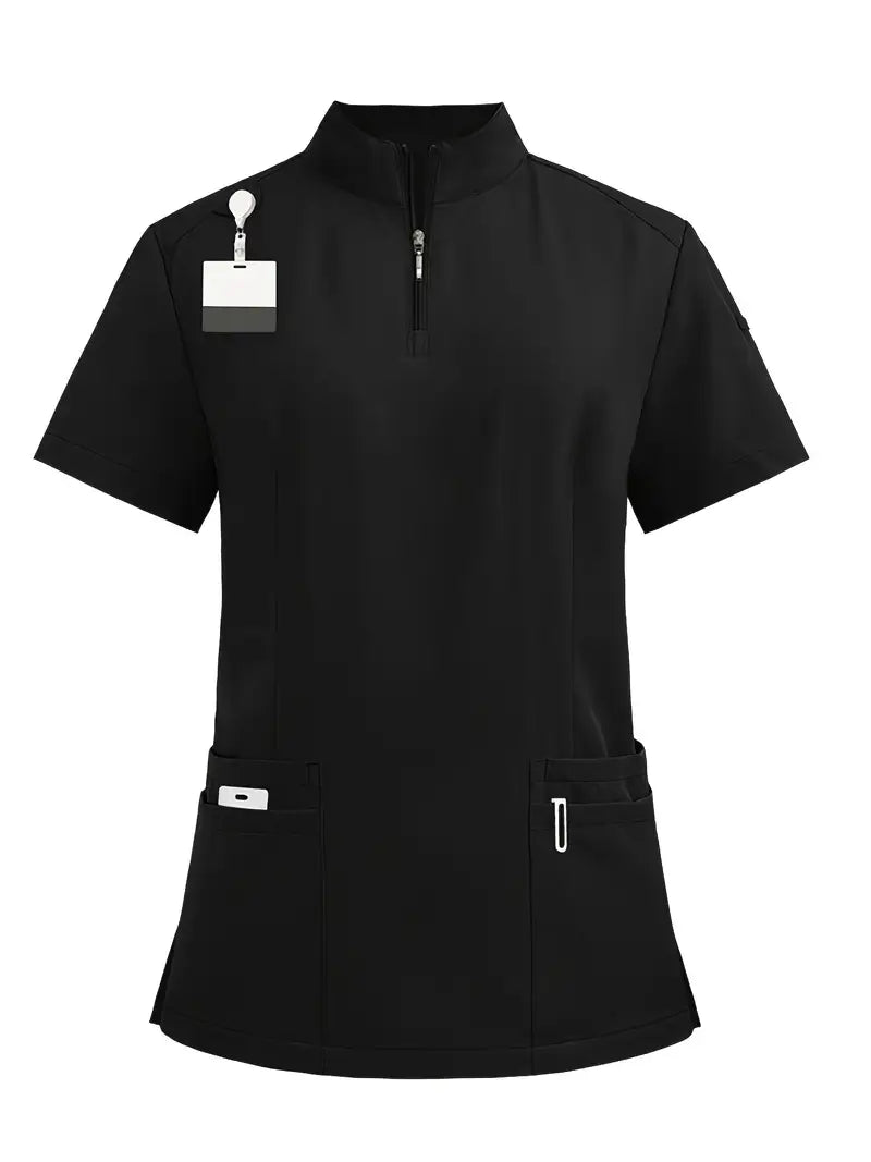Women's Polyester Scrubs Set with Zipper Polo Top and Jogger Pants for Spring