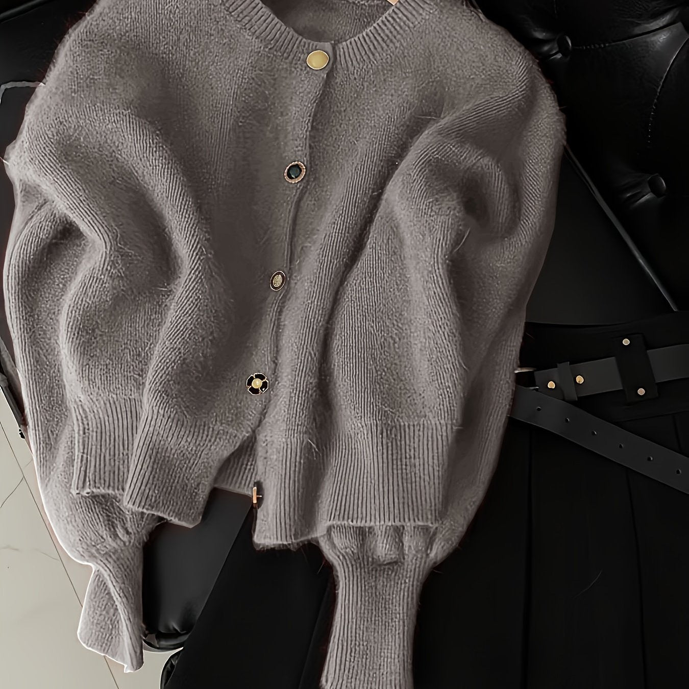 Women's Red Knit Cardigan Cozy Thick Sweater with Round Neck and Button-Up Design