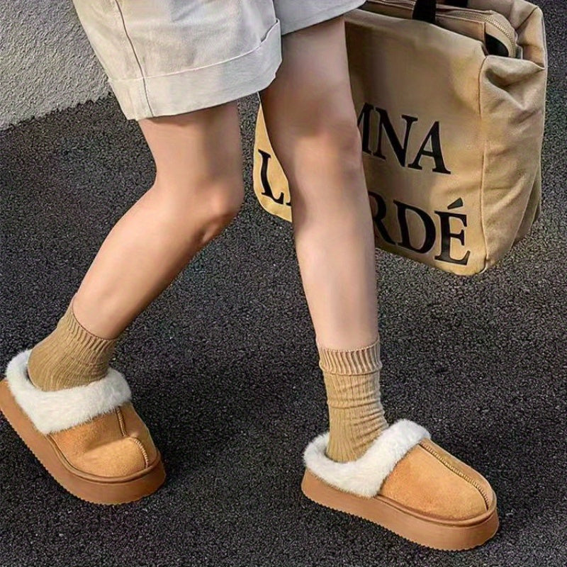 Women's Faux Fur Lined Winter Snow Boots Gray Warm Ankle Boots