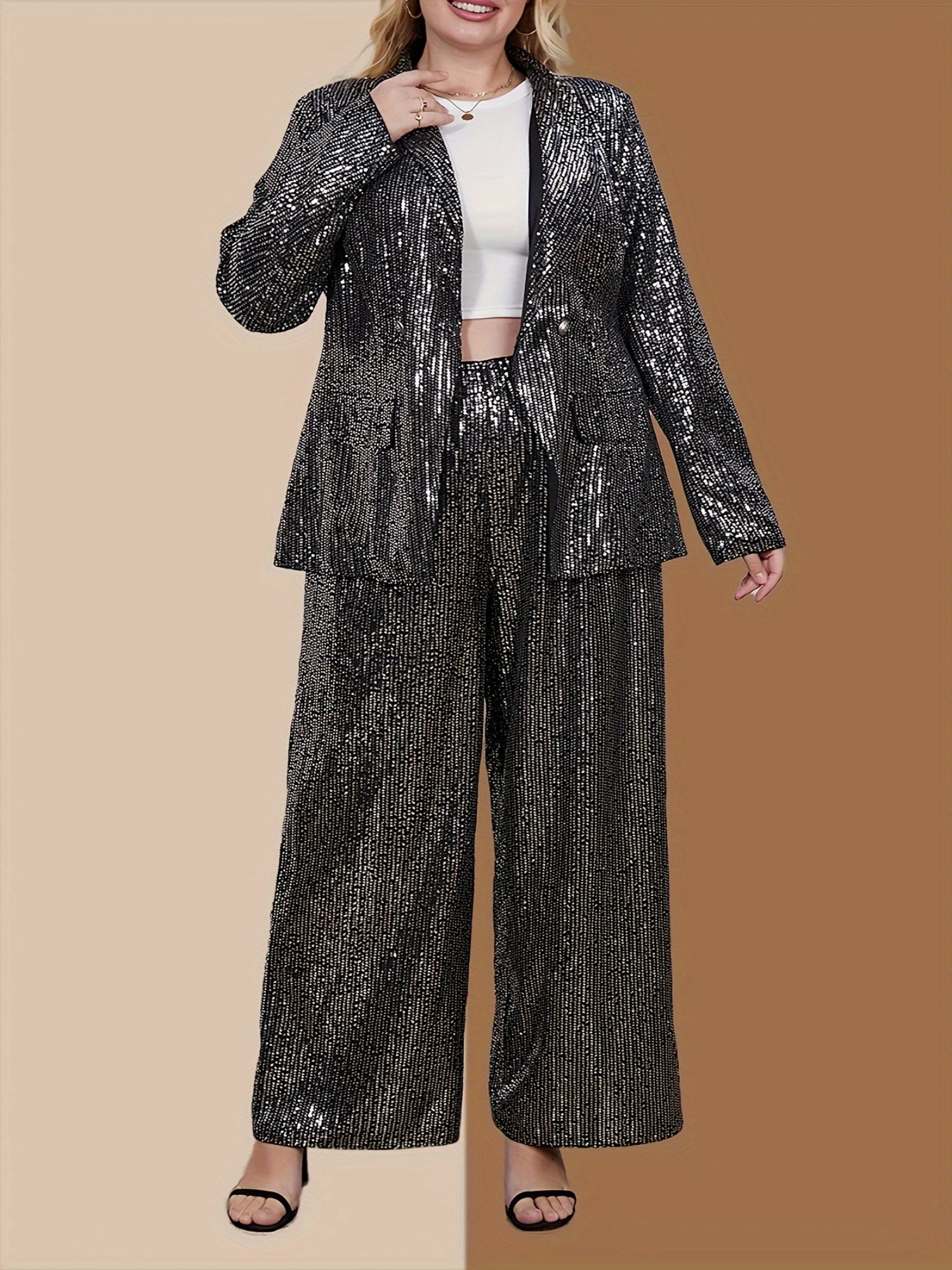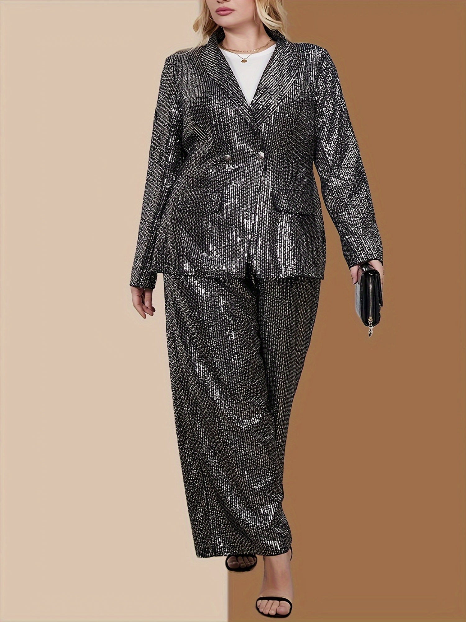 Women's Fitted Blazer with Sequins Plus Size Stylish Office Wear