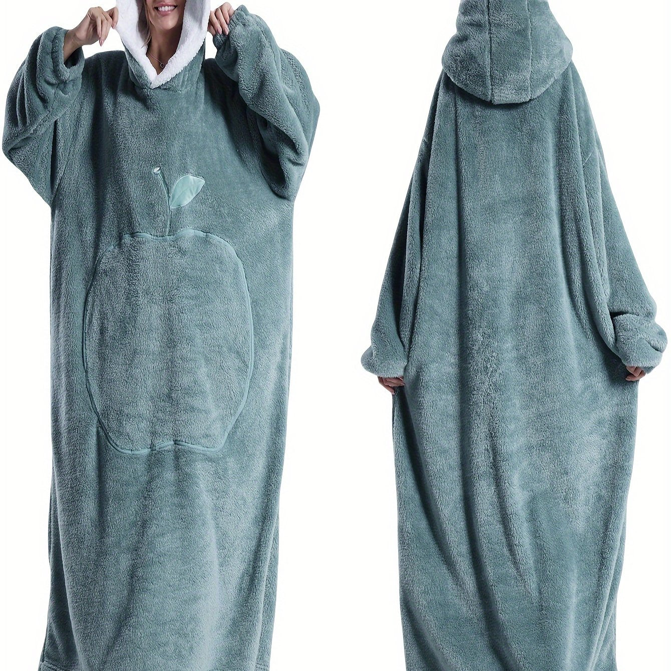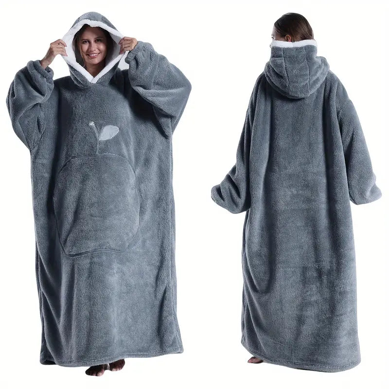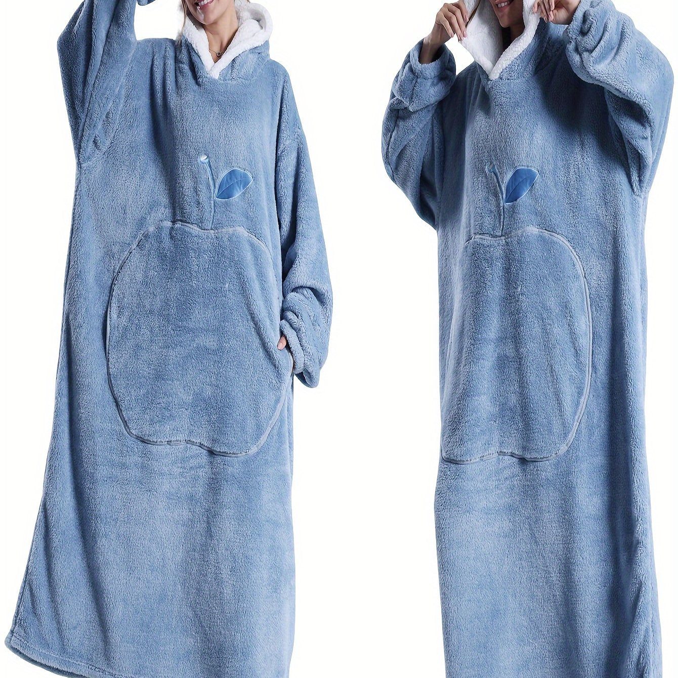 Women's Fleece Hooded Robe Pink Lounge Casual Winter Indoor Outdoor