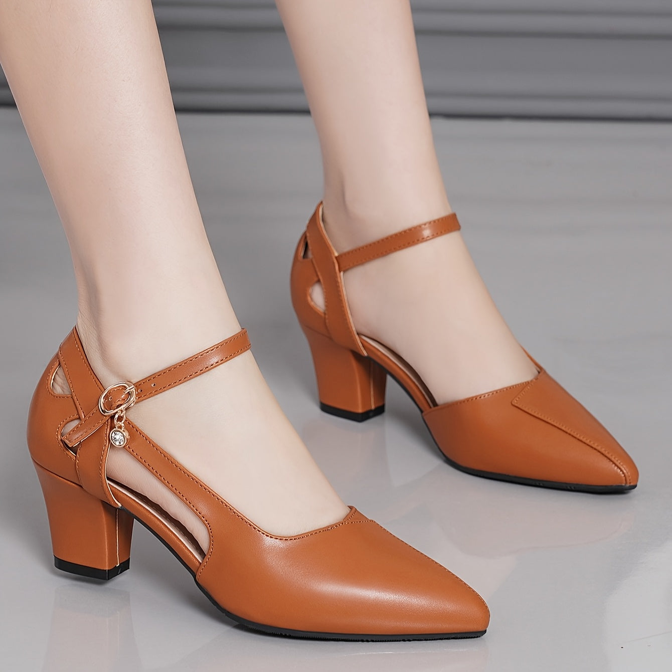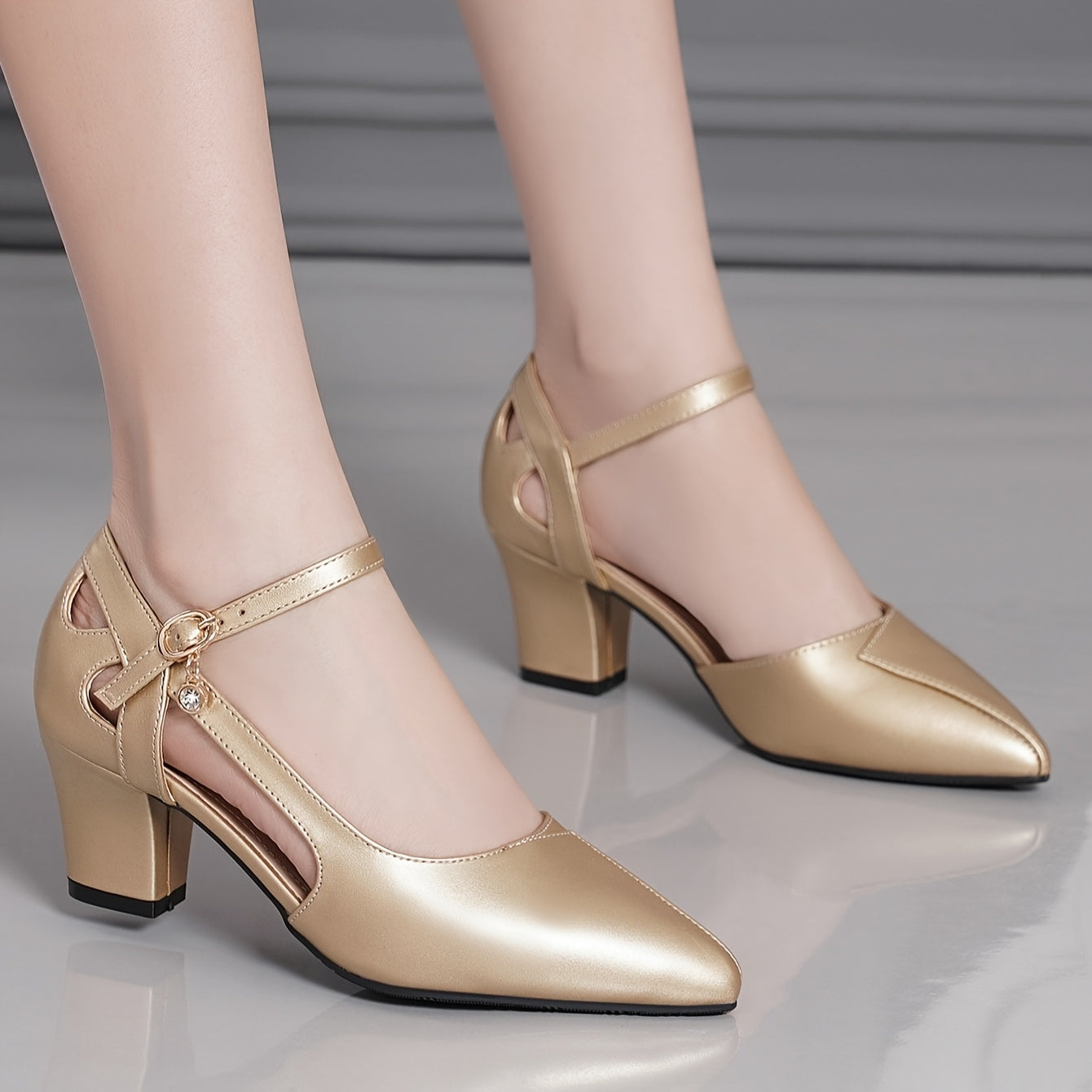 Women's High Heel Pumps with Buckle Strap Pointed Toe Black Floral Embossed