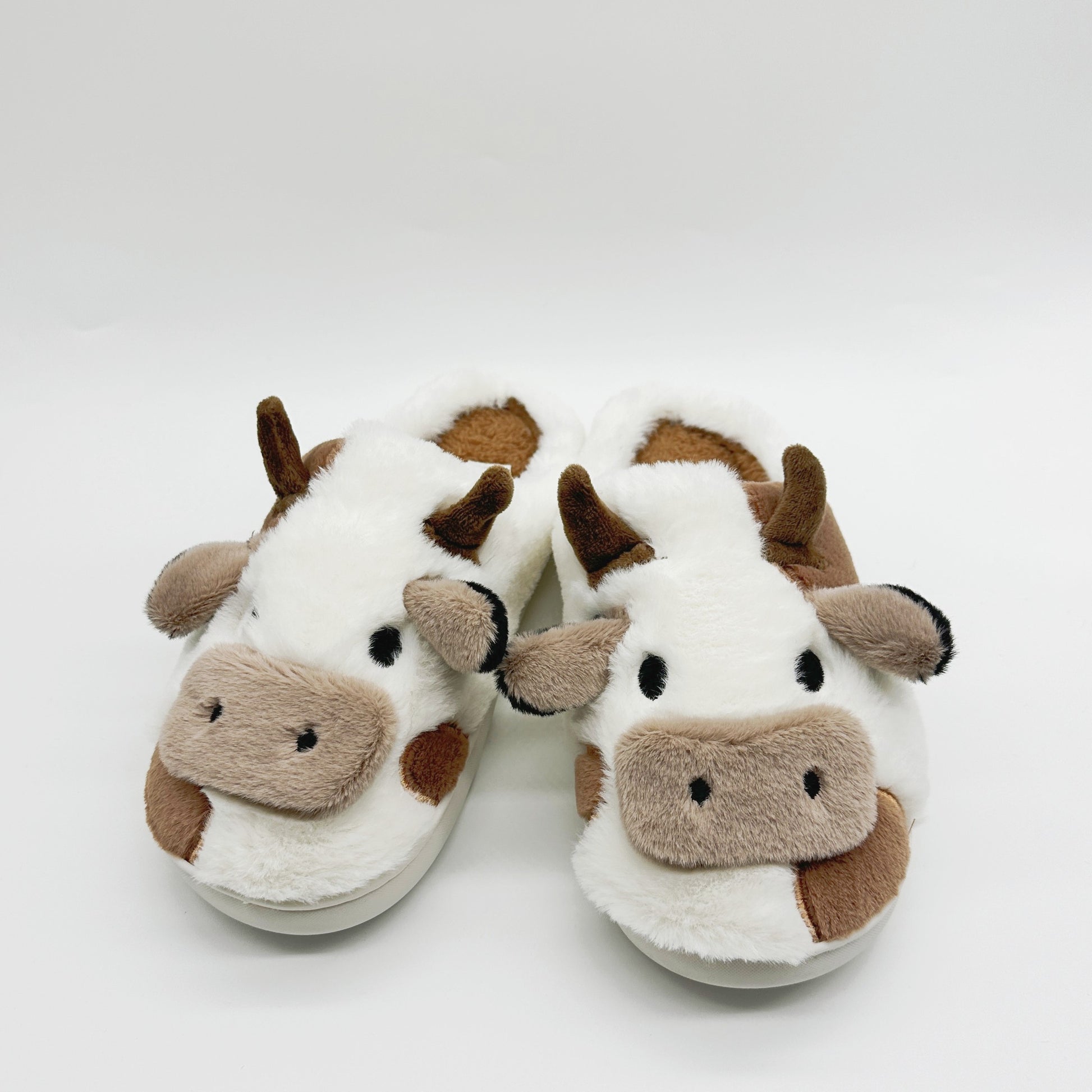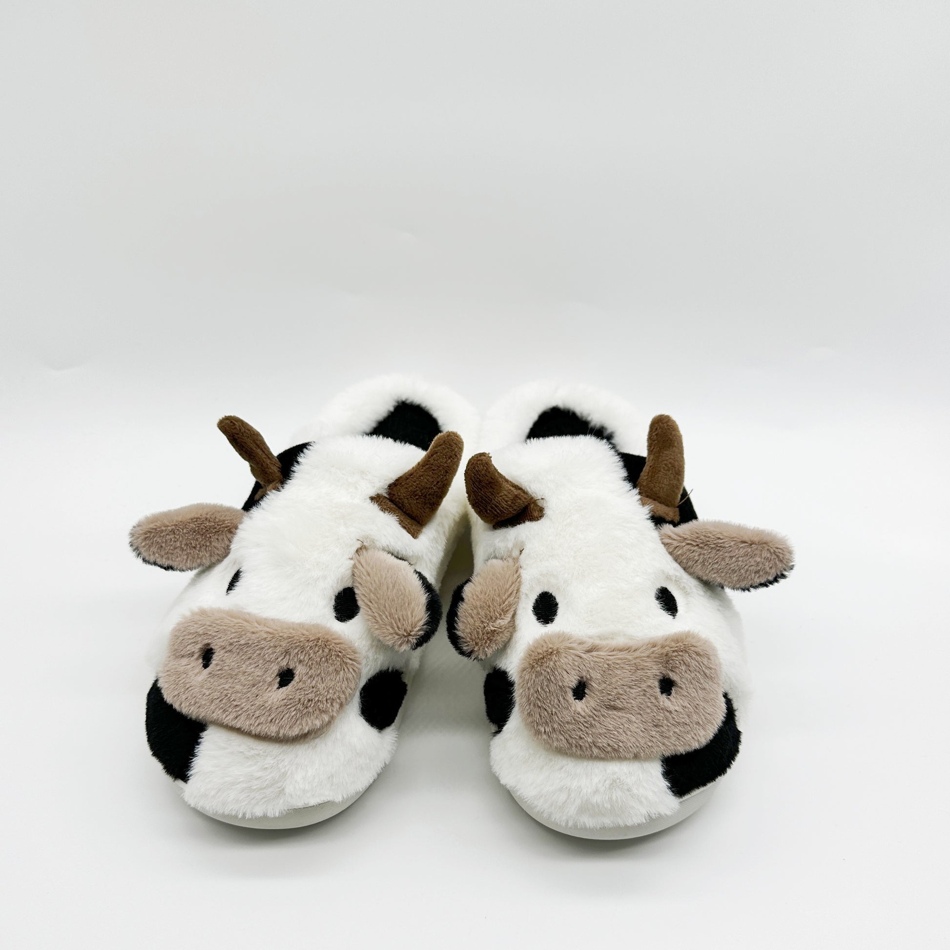 Women's Kawaii Cow Shaped Plush Cozy Non-Slip House Slippers