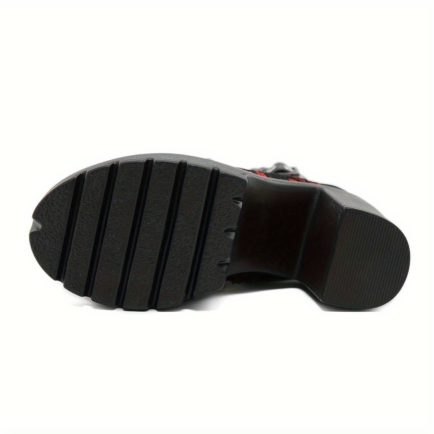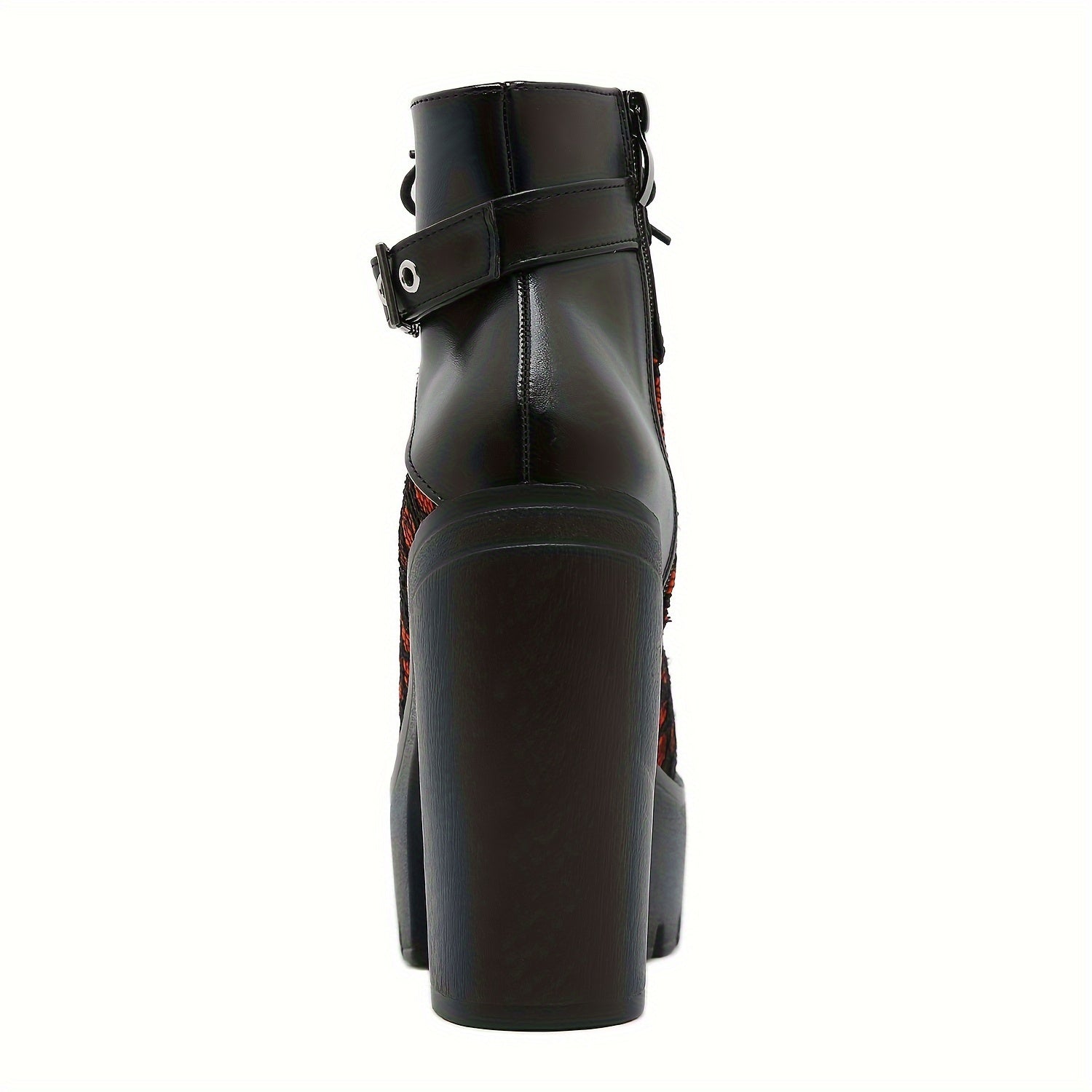 Women's Lace Red High Heel Ankle Boots with Platform Sole