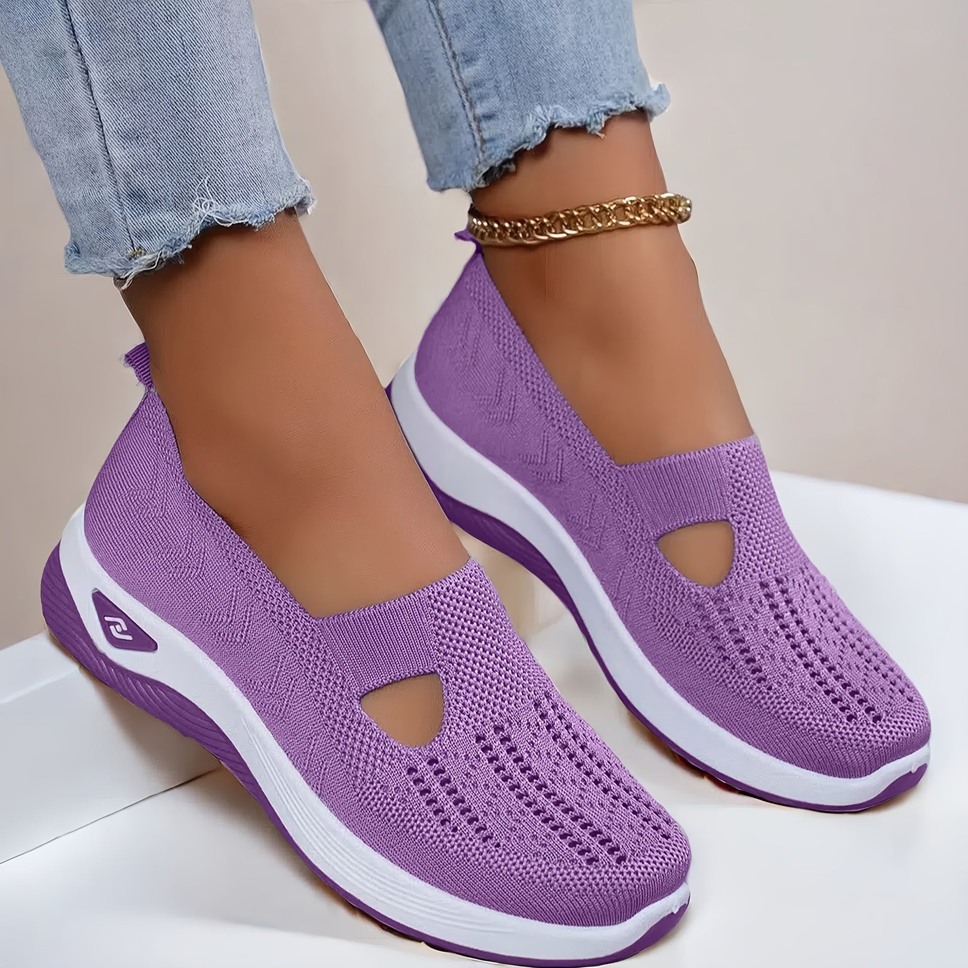 Women's Lightweight Knitted Sneakers with PVC Sole and Fabric Insole All-Season Slip-On