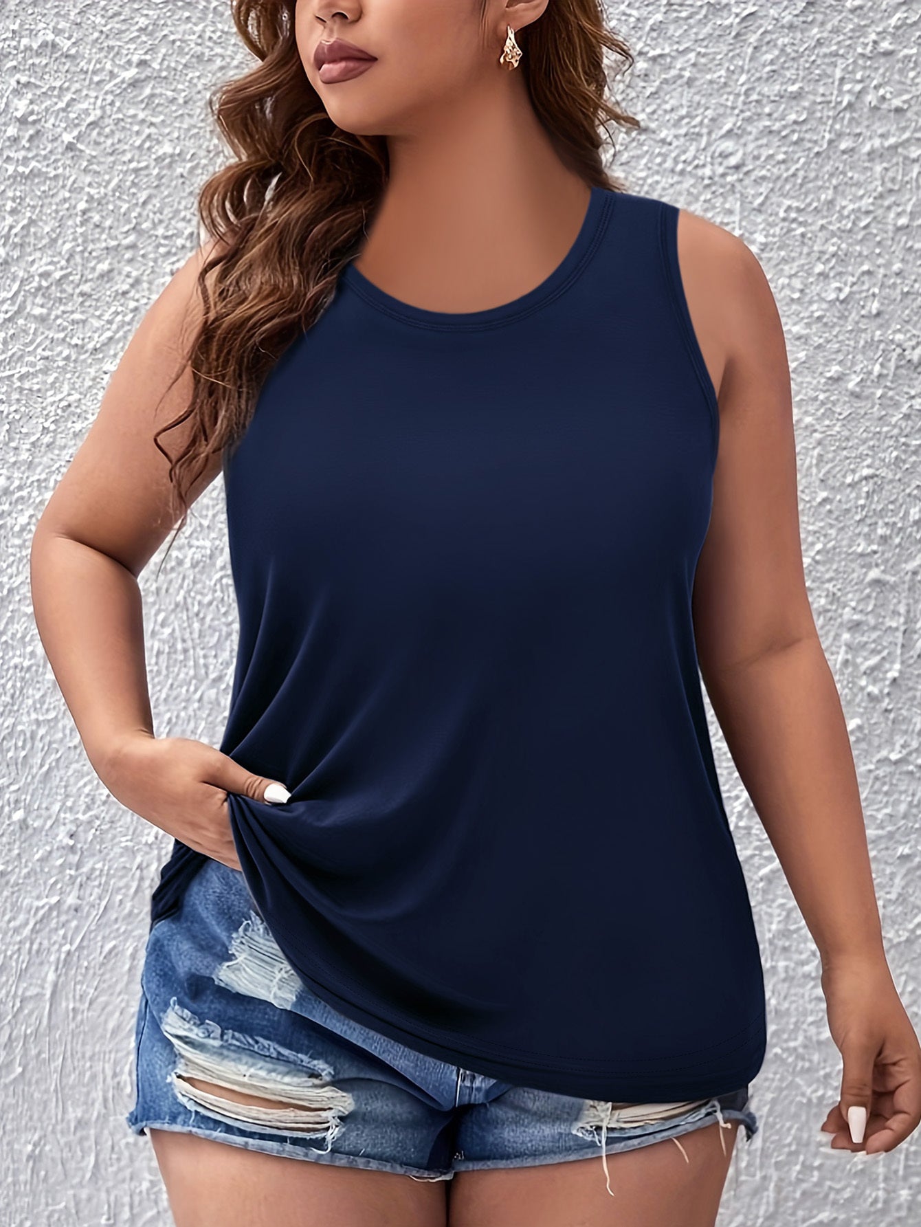 Women's Navy Blue Sleeveless Tank Top Polyester Casual Round Neck