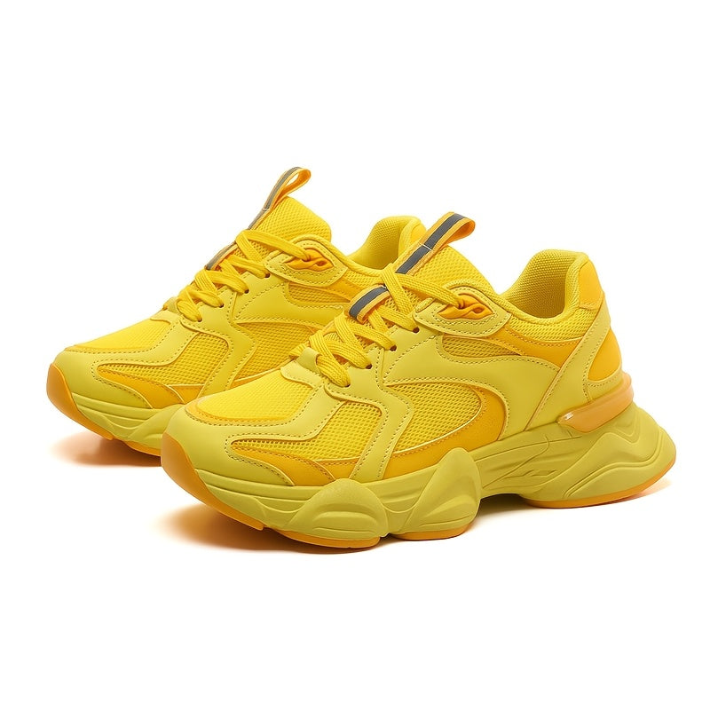 Women's Pink Beige Chunky Sneakers Breathable Mesh Casual Running Shoes