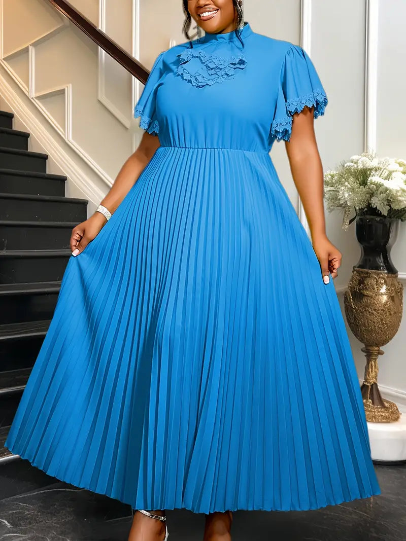 Women's Pink Pleated Maxi Dress with Lace Detail for Weddings and Holidays
