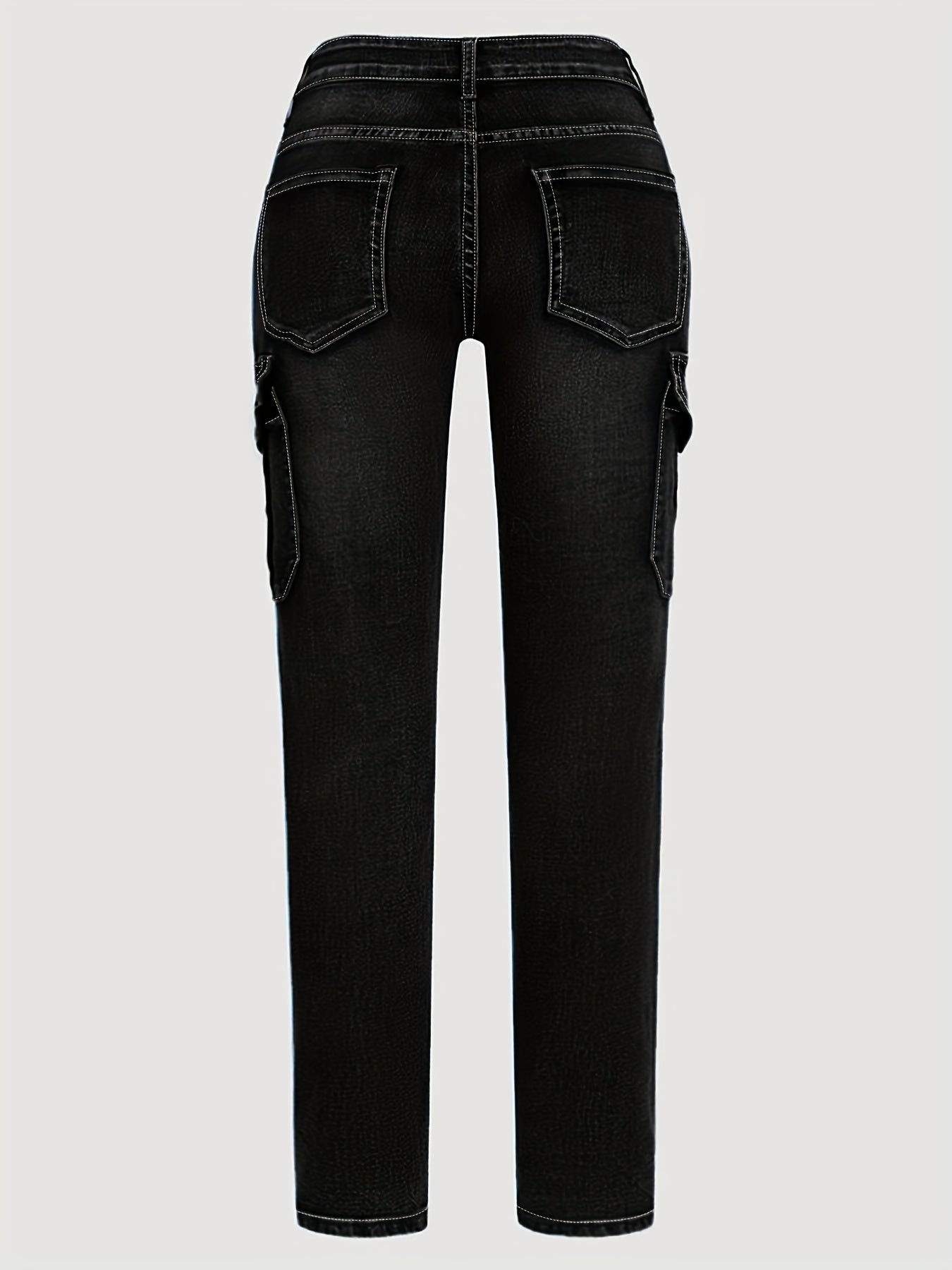 Women's Plus Size Black High-Waisted Stretch Skinny Jeans Cargo Pants