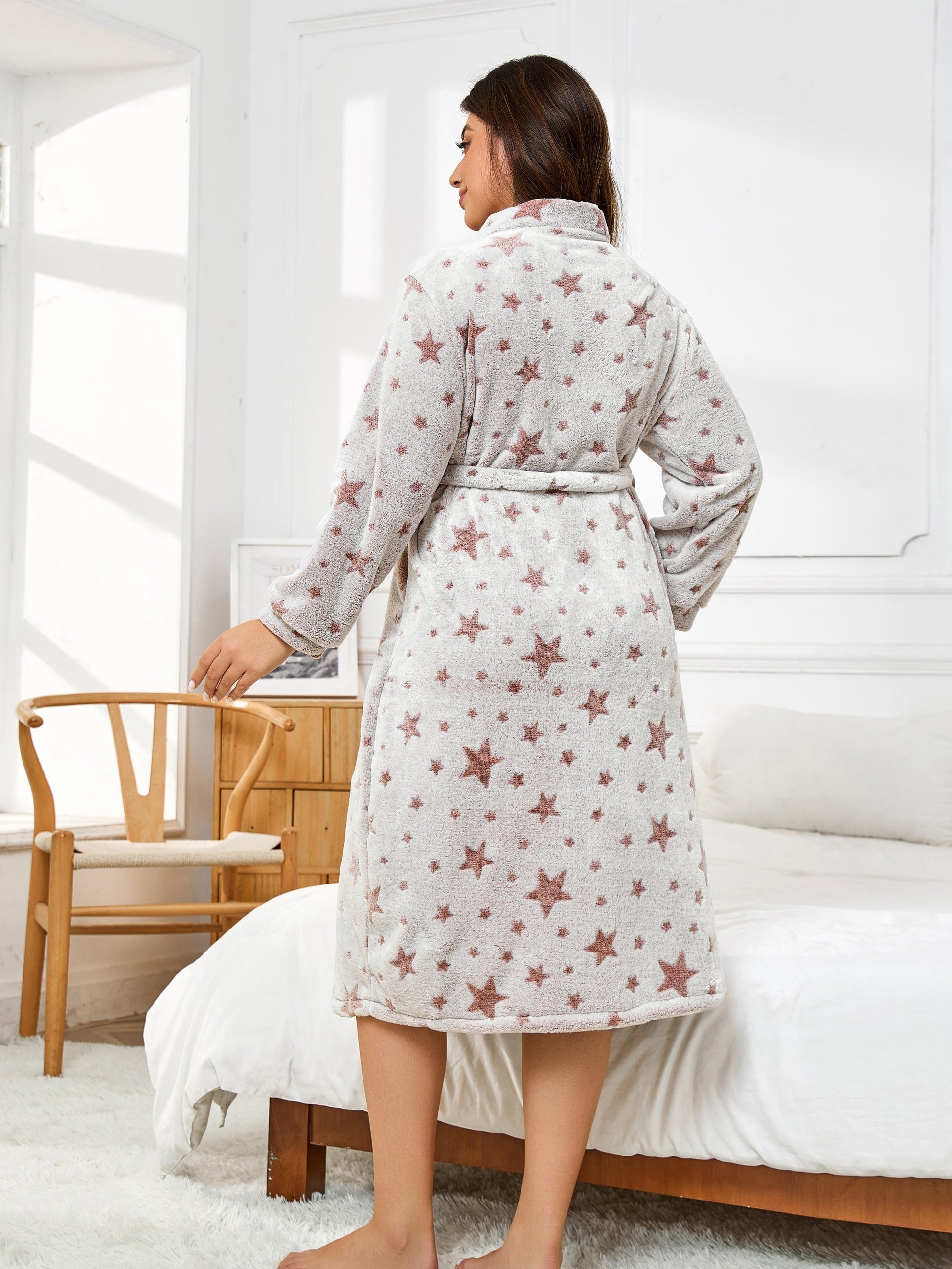 Women's Plus Size Fleece-Lined Star Print Robe for Home Wear