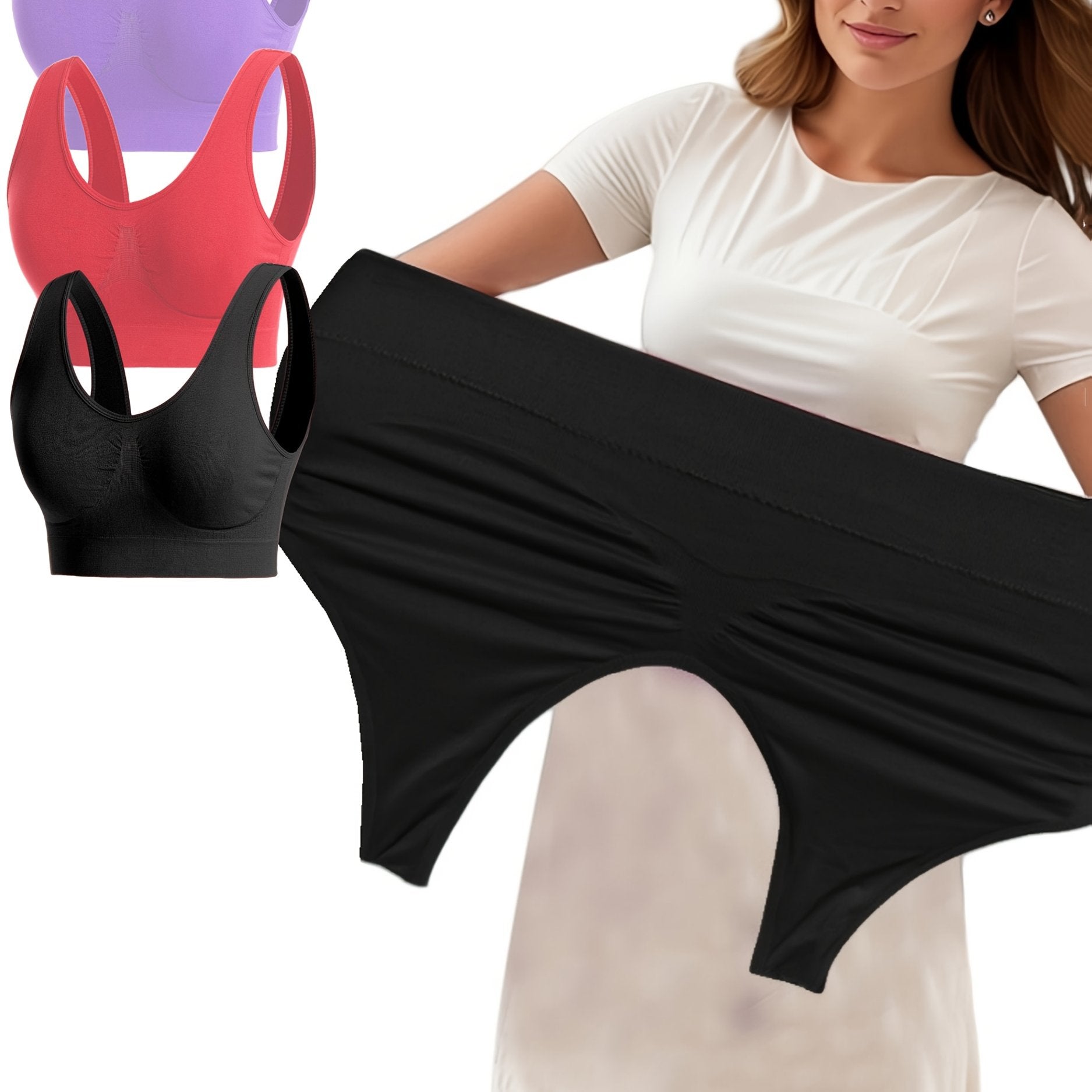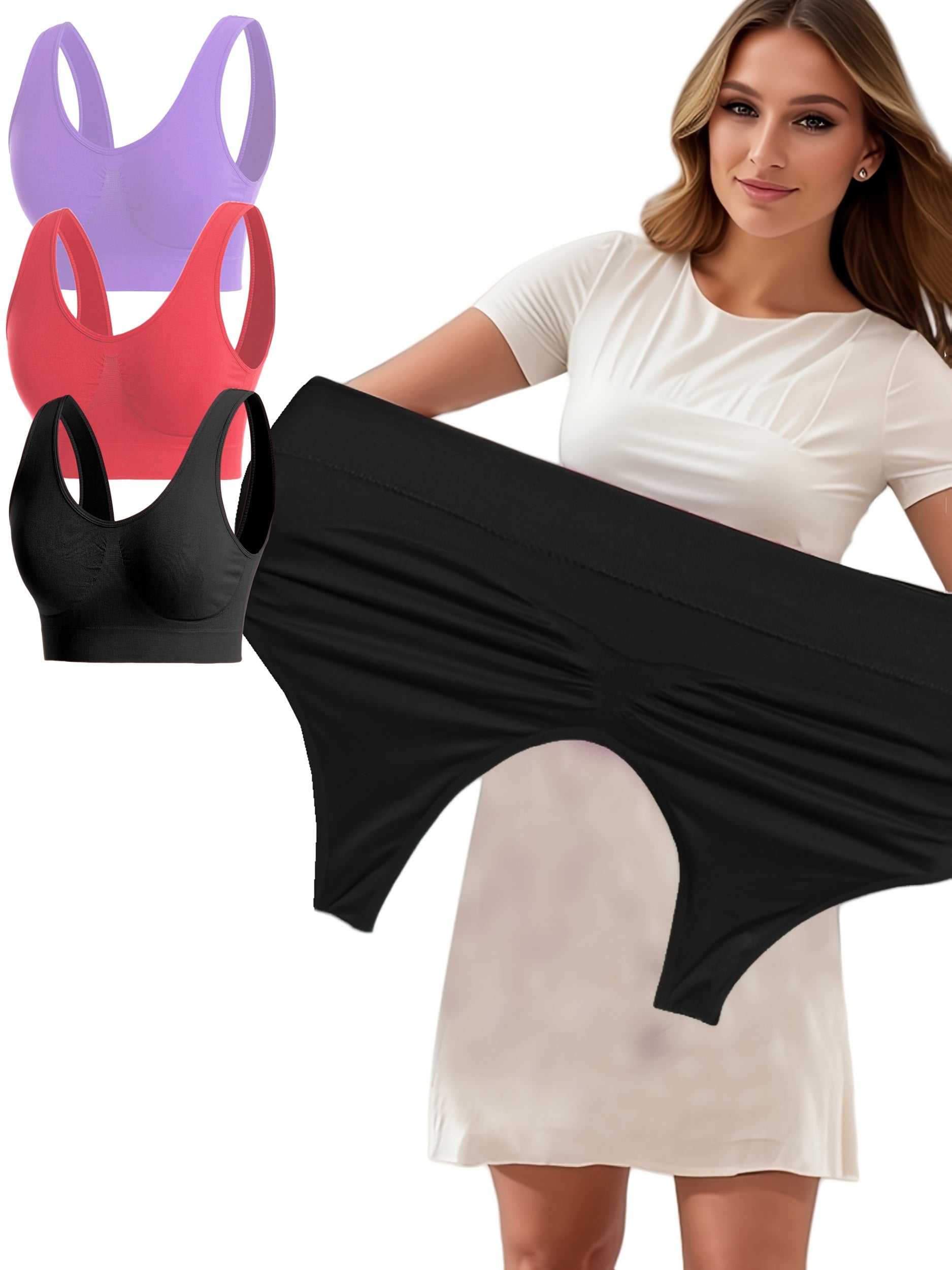 Women's Plus Size Sports Bras Breathable Wireless No-Pad Activewear Set