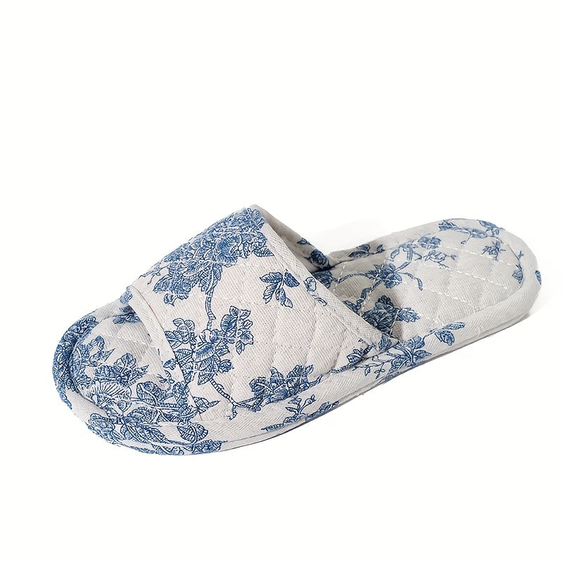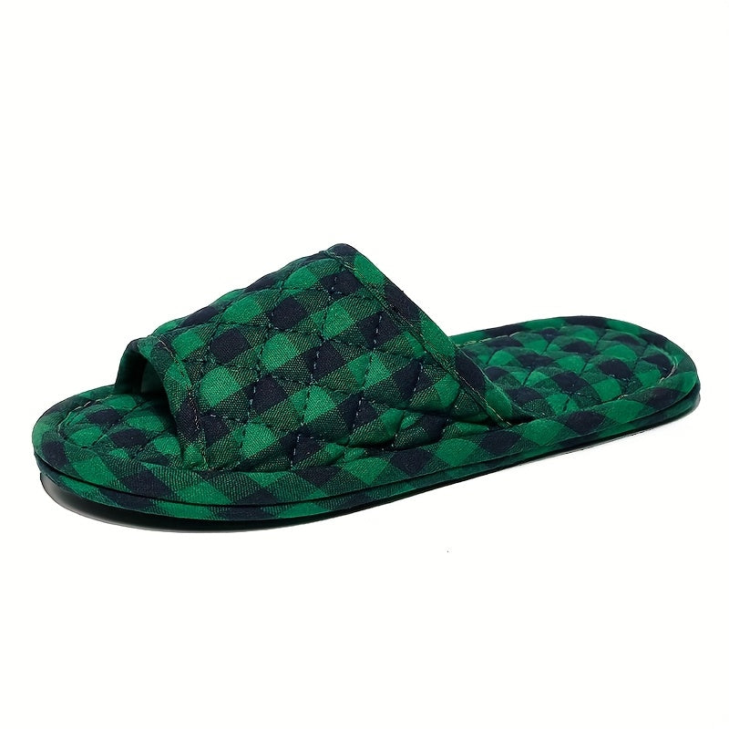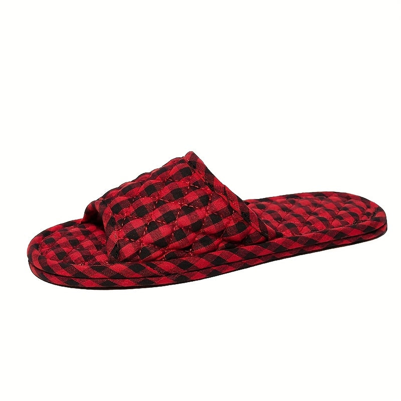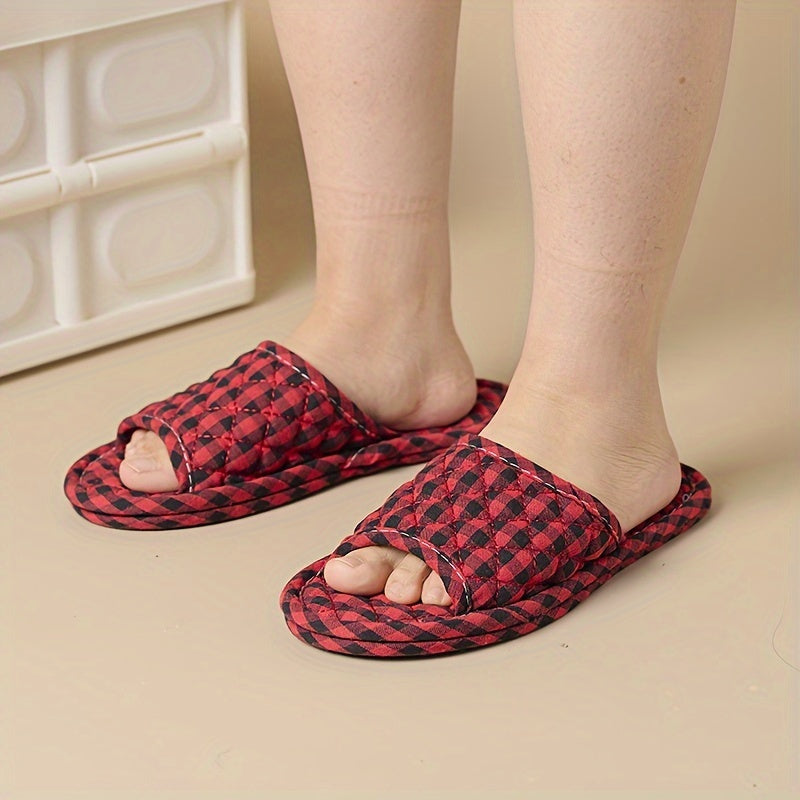 Women's Plush Fabric Slip-On Indoor Slippers with Checkered Pattern