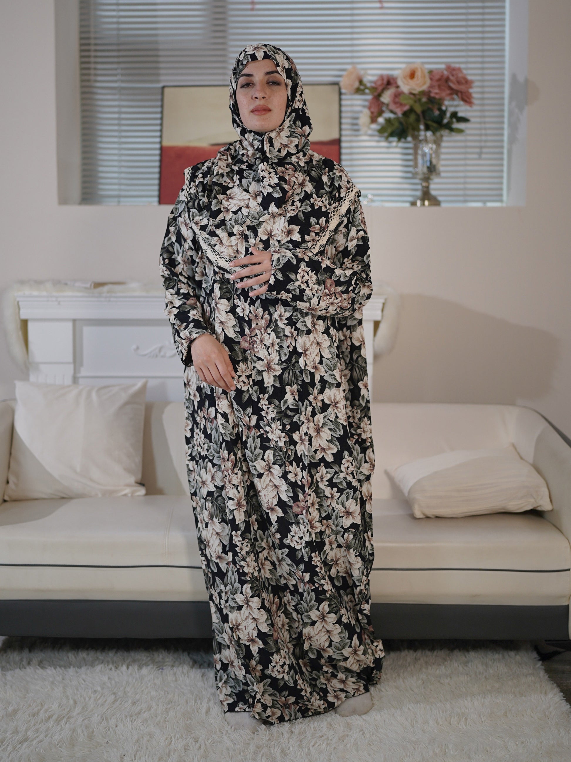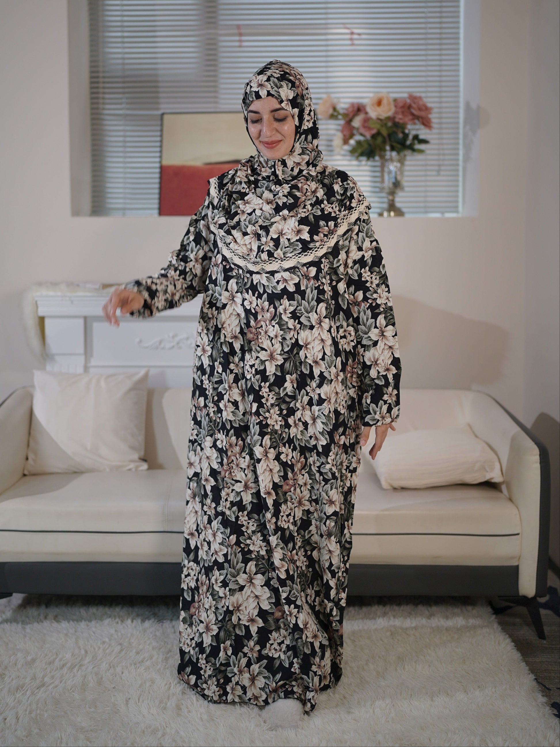 Women's Rayon Hooded Robe with Floral Print, Loose Fit, Lightweight