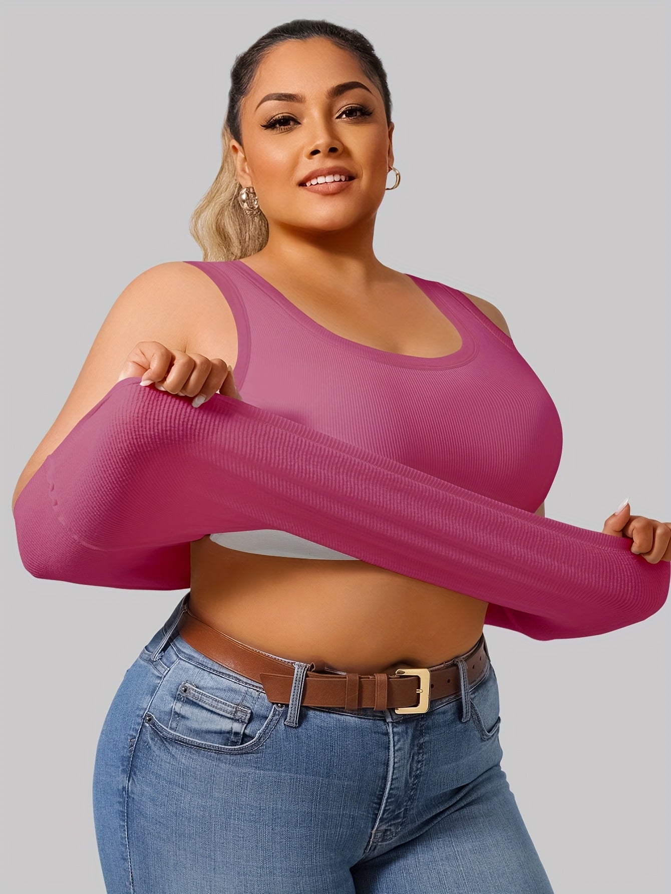 Women’s Rib-Knit Sports Bra and Tank Top 2-in-1 Solid Polyester Elastane Sleeveless Workout
