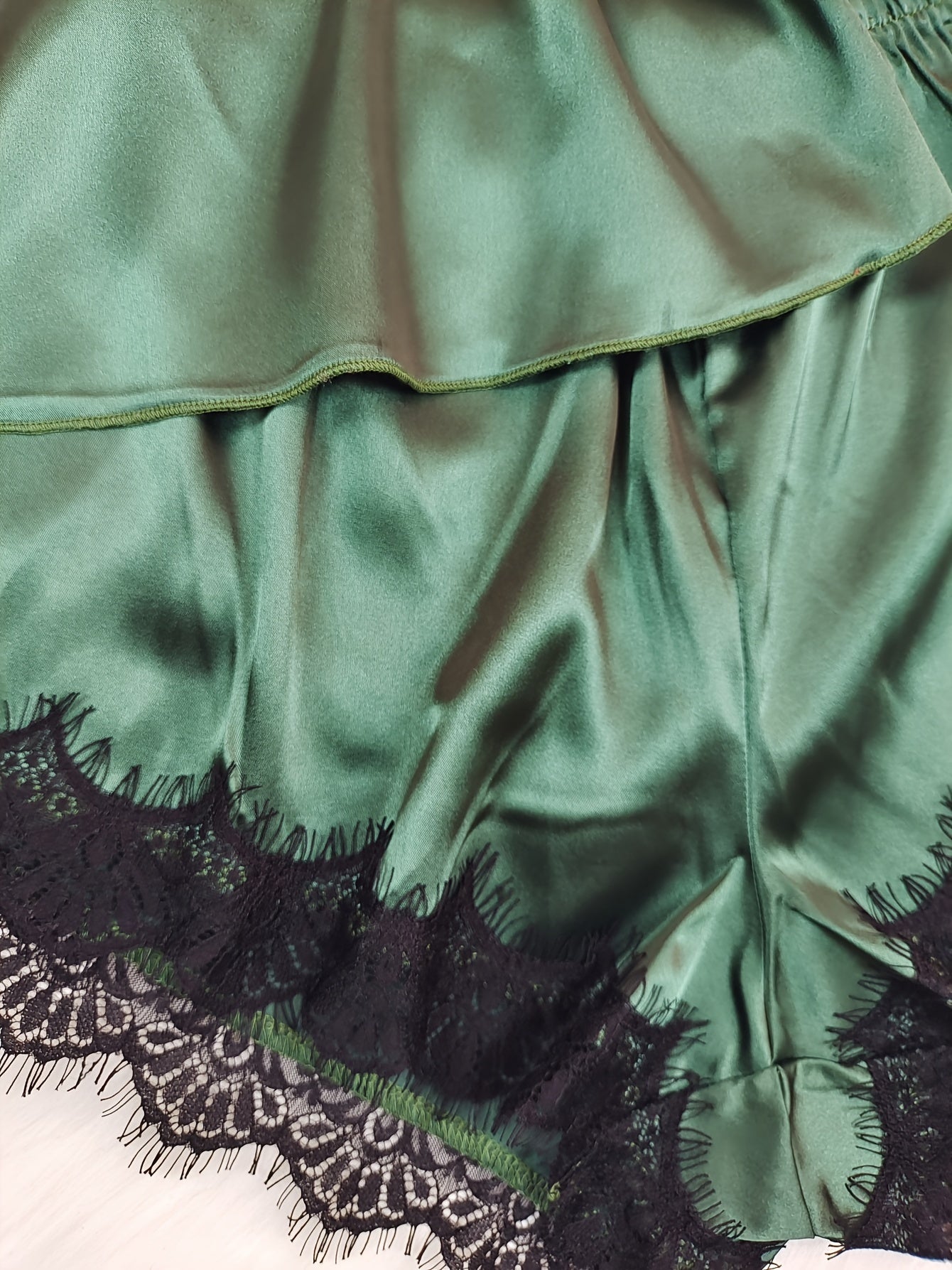 Women's Sexy Pajama Set with V-Neck Off-Shoulder Lace Trim Polyester Blend
