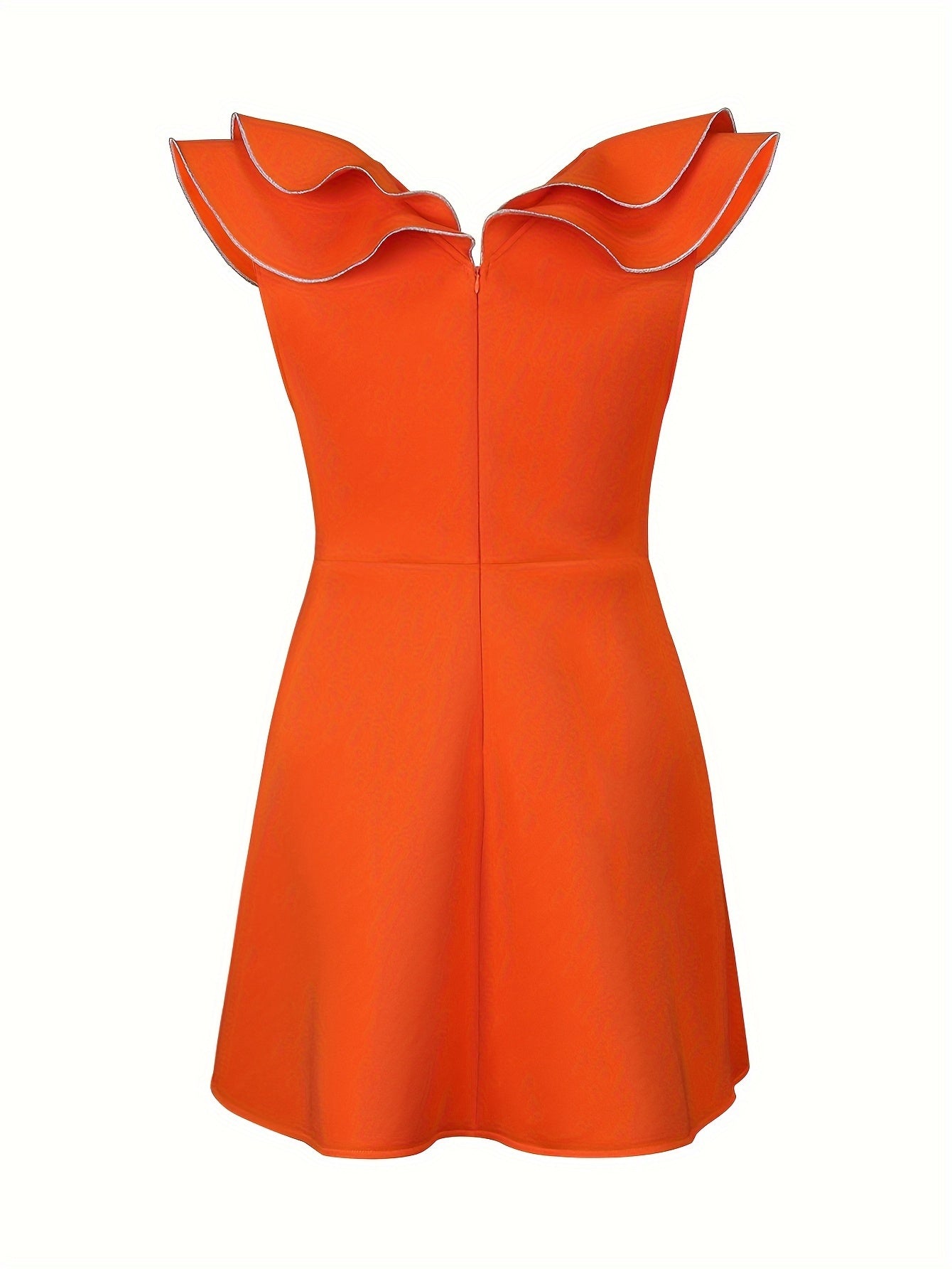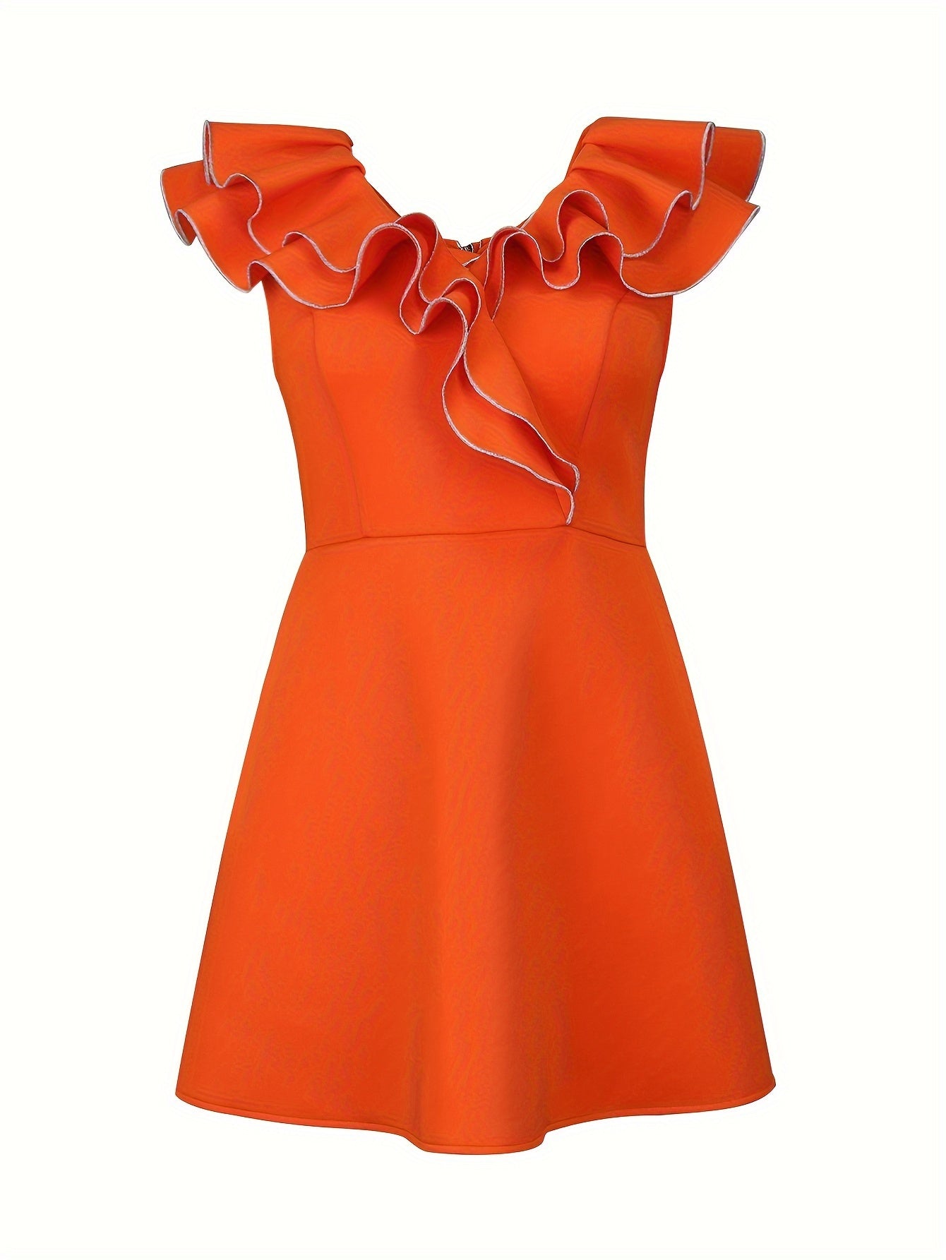 Women's Short Bodycon Party Dress V Neck Silvery Ruffles Elegant