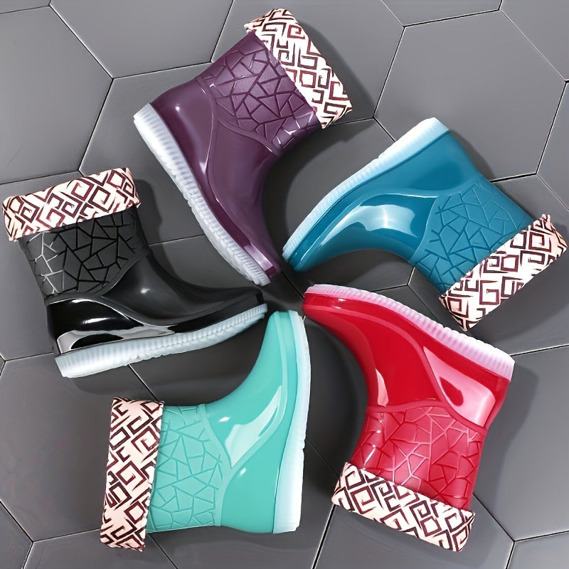 Women's Short Rain Boots Waterproof PVC Glossy Non-Slip Winter Shoes