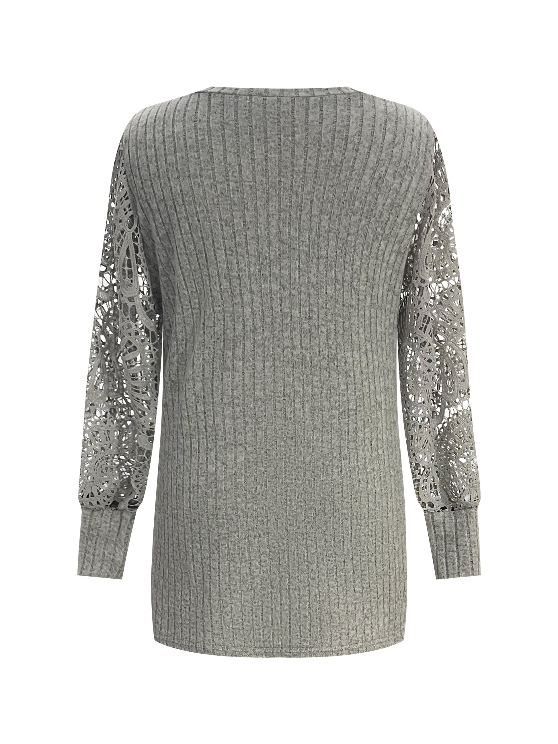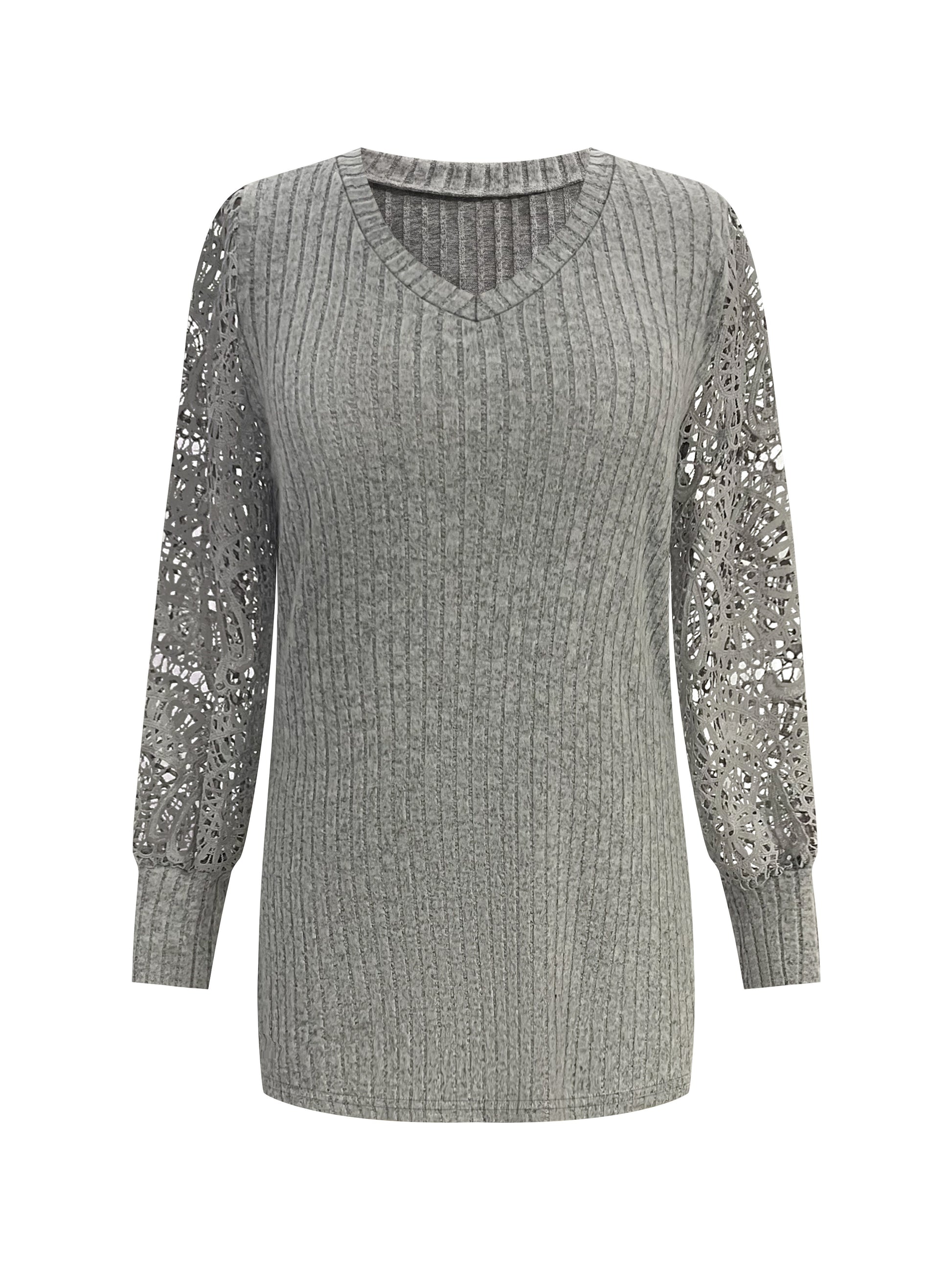 Women's V-Neck Long Sleeve Blouse with Lace Accents, Solid Color, Breathable