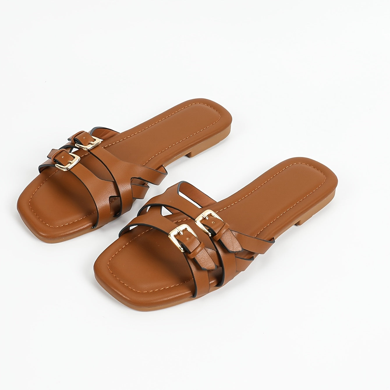 Women's Wide Fit Flat Sandals with Adjustable Straps and Open Toe