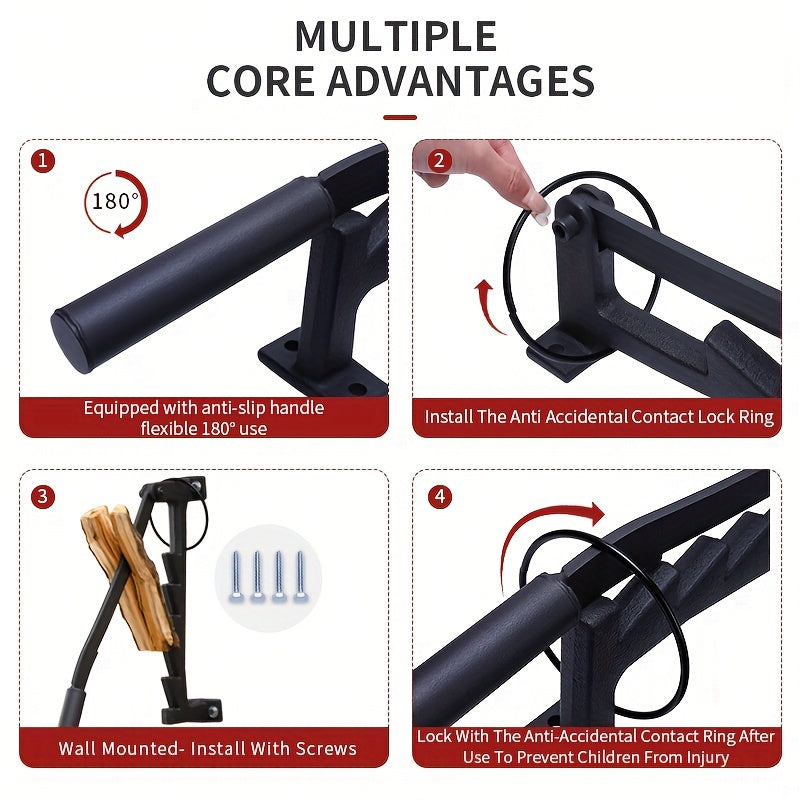Wall-Mounted Wood Splitter High Carbon Steel Manual Firewood Cutter Indoor Outdoor Use