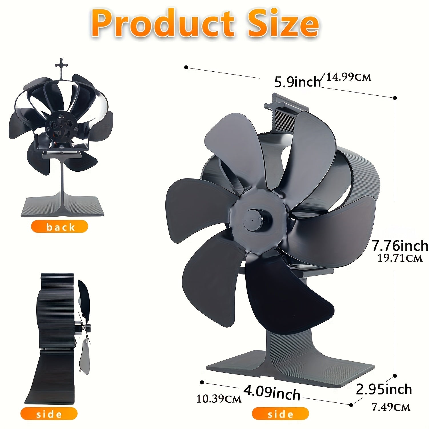Heat Powered Wood Stove Fan 6 Blade Non-Electric Fireplace Thermometer
