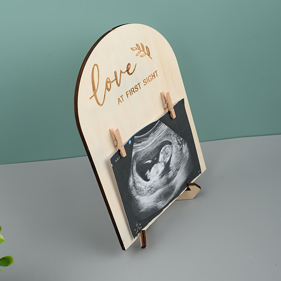 Wooden Dual-Sided Ultrasound Photo Frame for Pregnancy Announcements or Baby Milestones