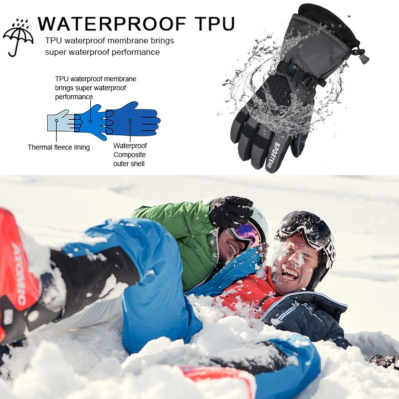 Waterproof Snowboard Gloves for Men and Women - Touchscreen Knit Fabric Warm Winter Gloves