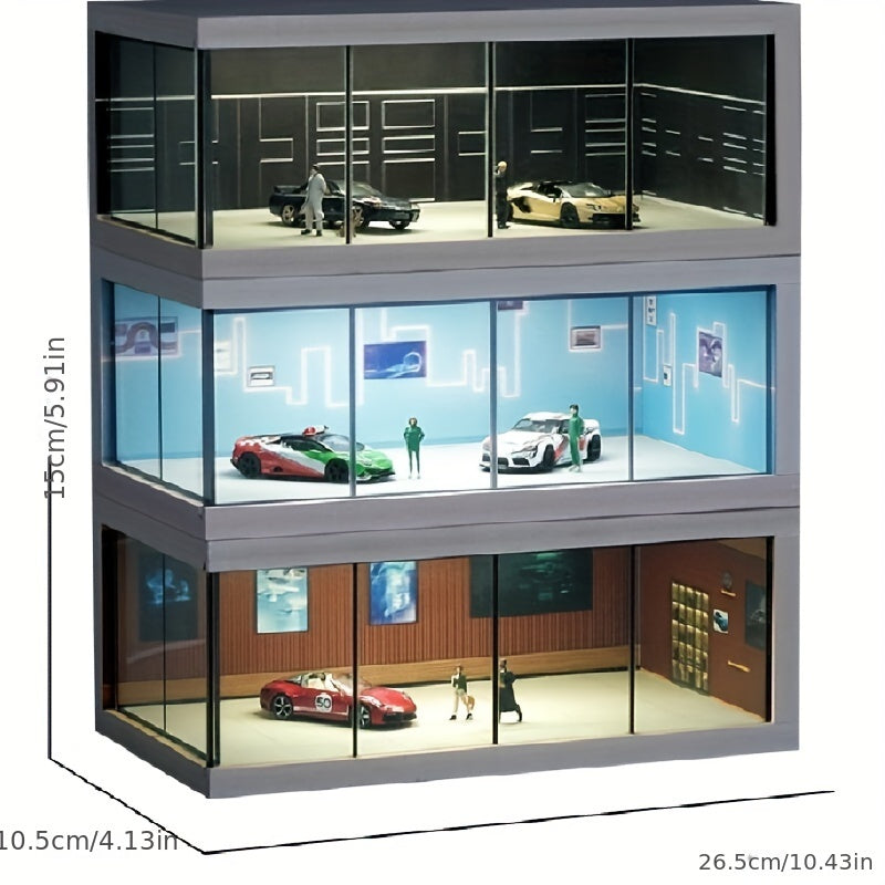 1/64 Scale Acrylic Car Model Display Case with Dust Cover and Lighting Effects for Collectibles