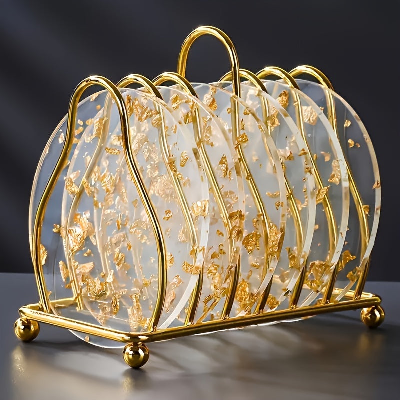 Luxury Gold Foil Acrylic Coaster Set Heat-Resistant Round Table Protector for Home Decor