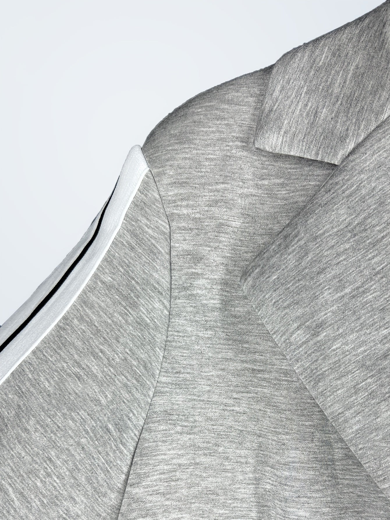 Women's Fall Winter Polyester Knit Suit with Lapel Blazer and Side Stripe Pants