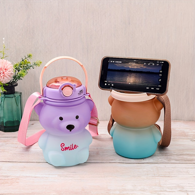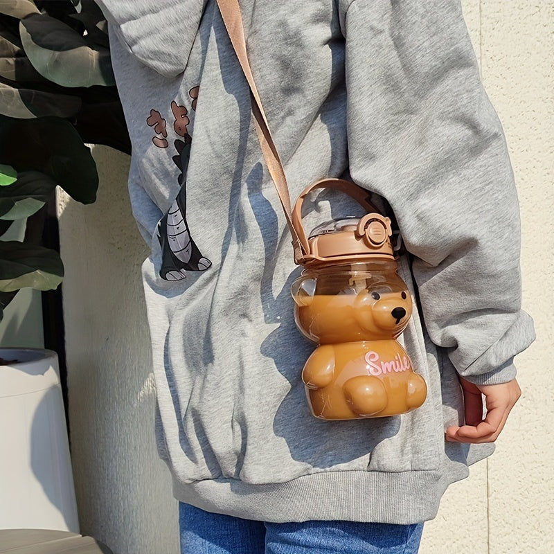 1000ml Transparent Water Bottle with Straws, Leak-Proof, PC Material, Handle