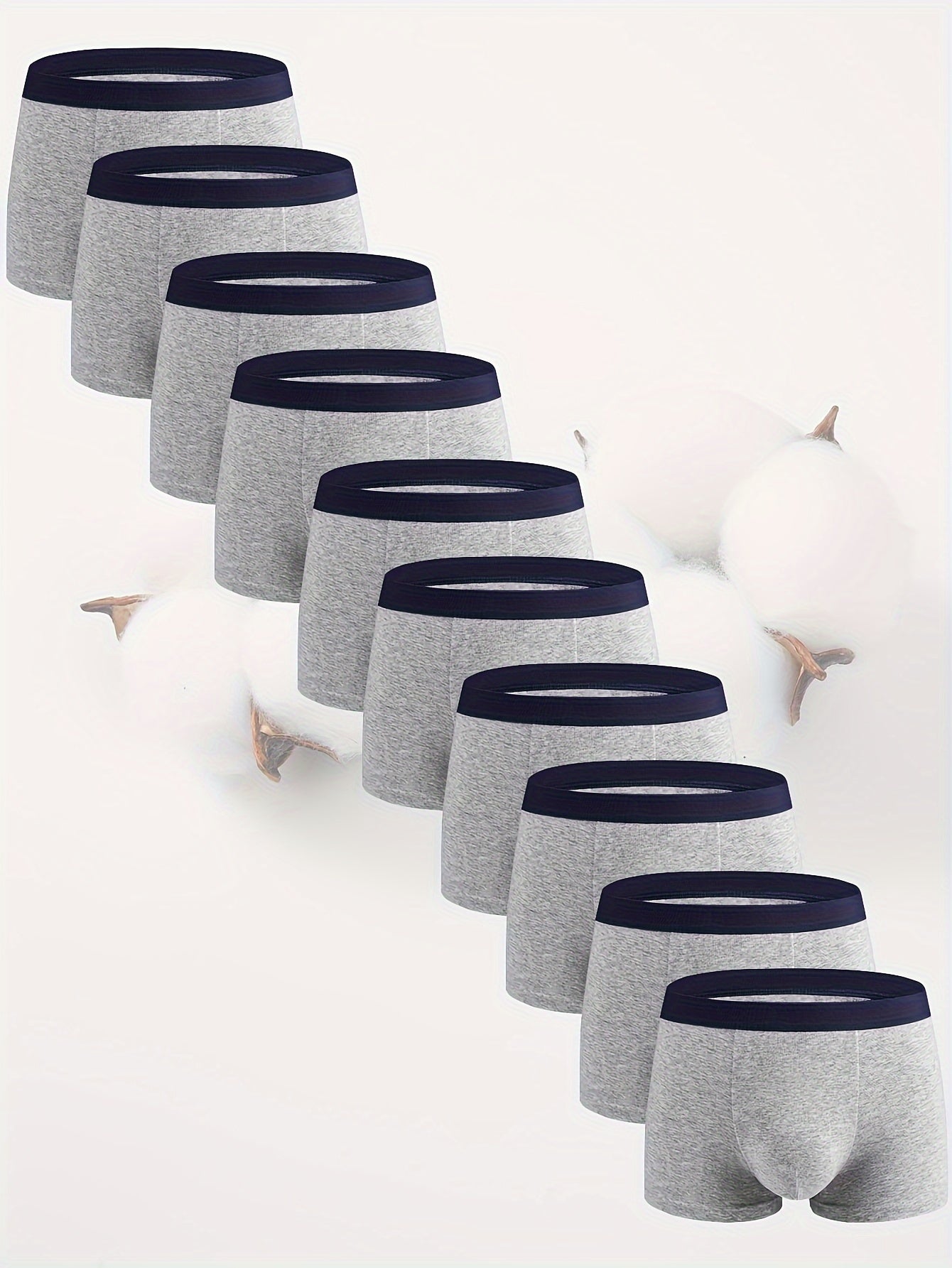 10 Pcs Men's Solid Cotton Boxer Briefs Breathable Comfortable Underwear