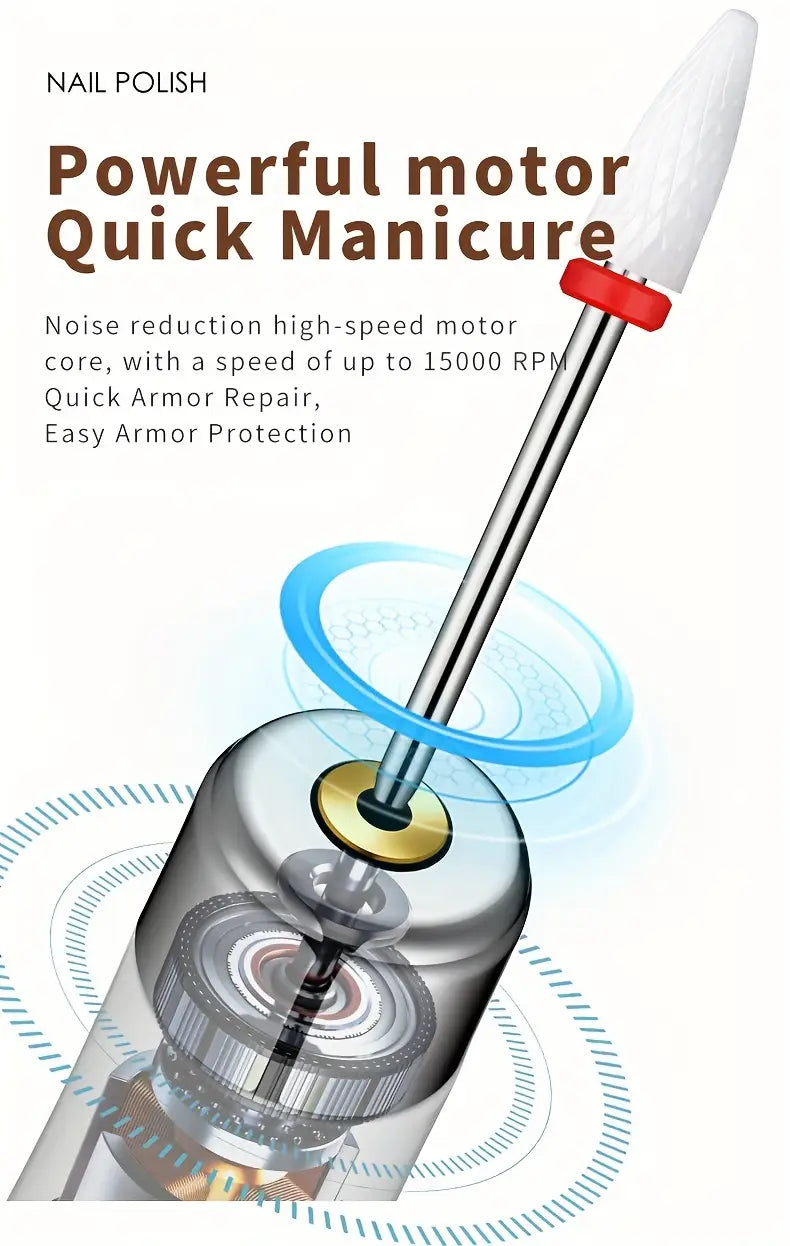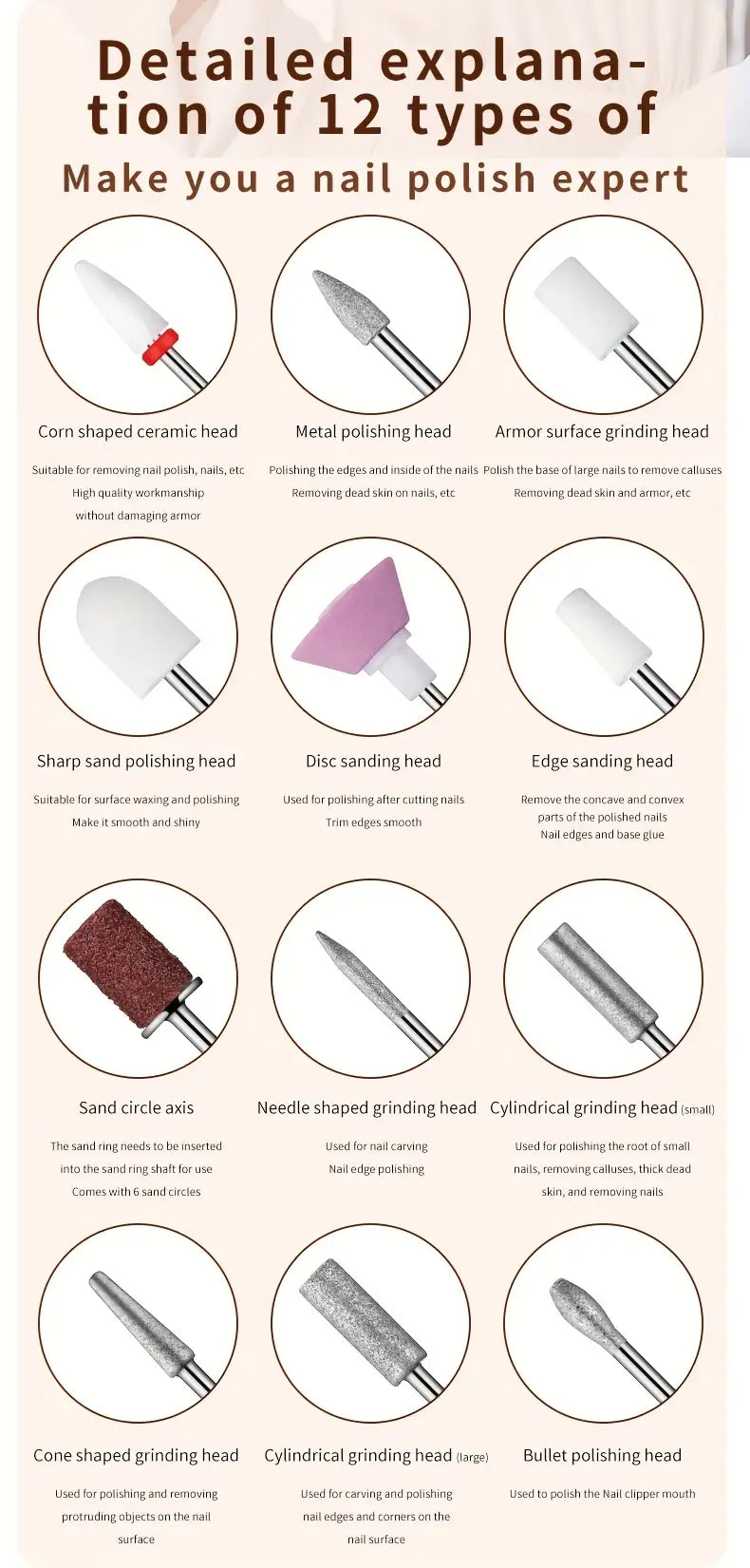 Electric Nail Drill Kit with 12 Grinding Heads USB Rechargeable 3-Speed Dual-Direction Manicure Pedicure Dead Skin Removal