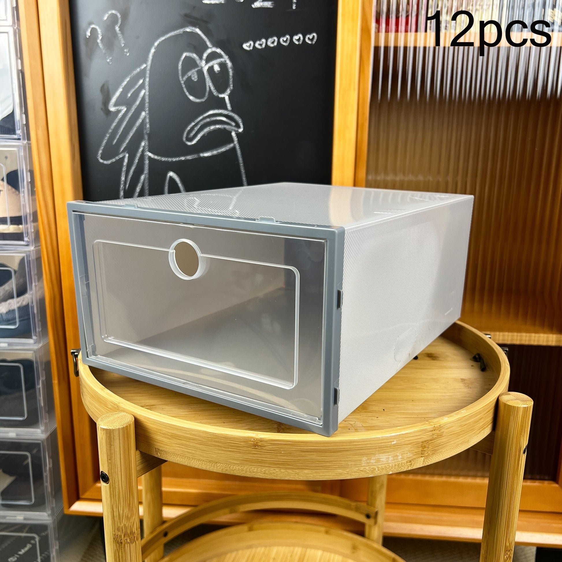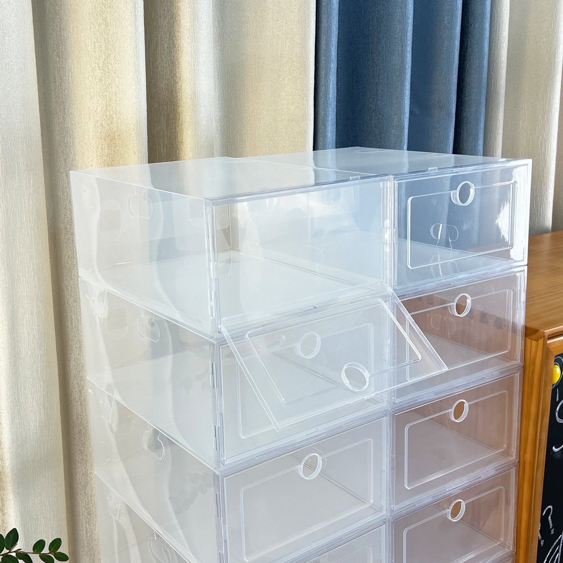 12 Pack Transparent Plastic Shoe Storage Boxes Stackable Organizer for Shoes Jewelry Watches