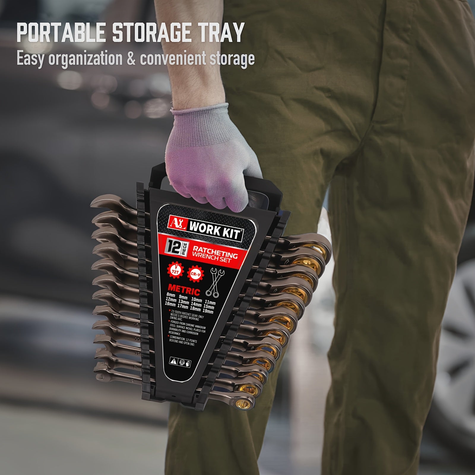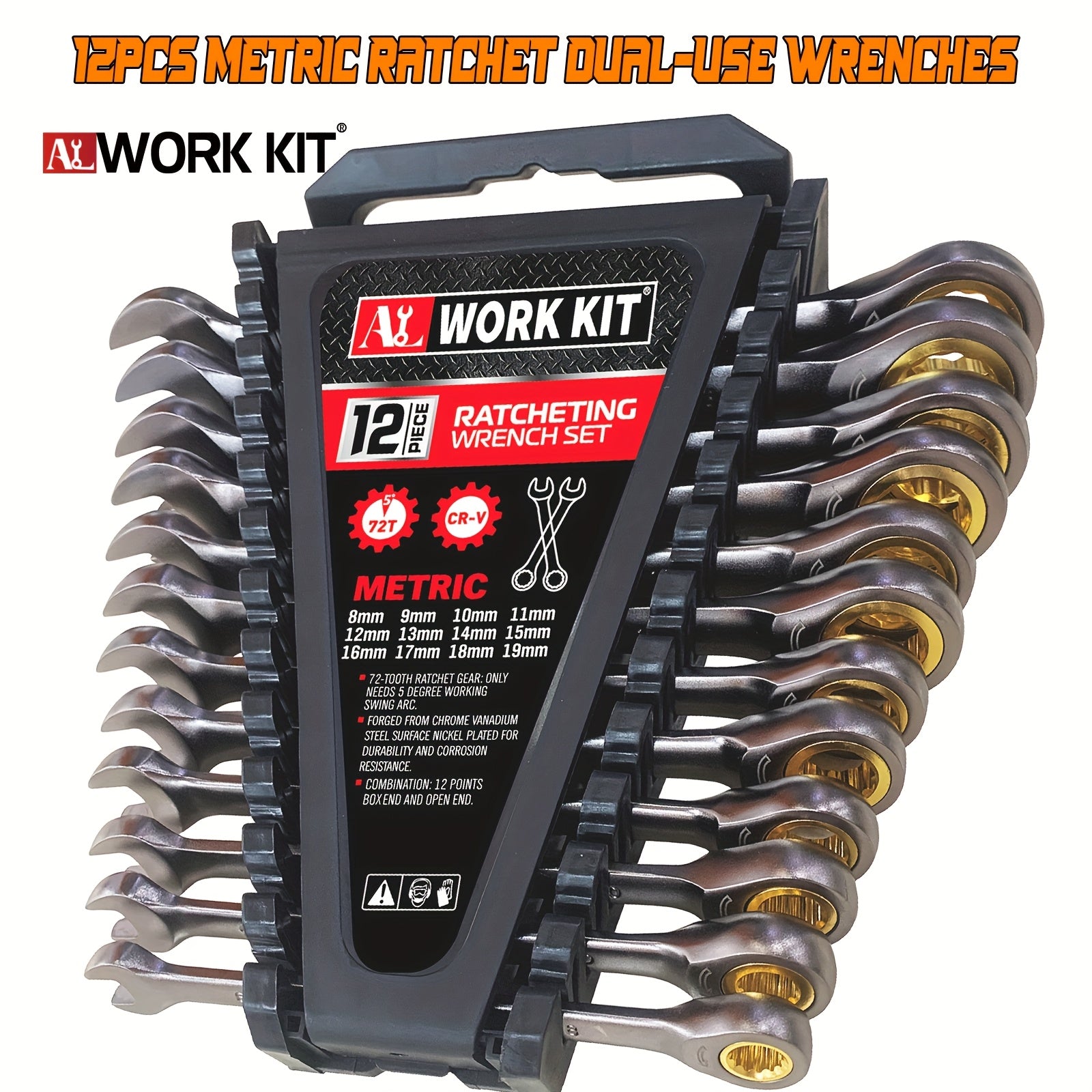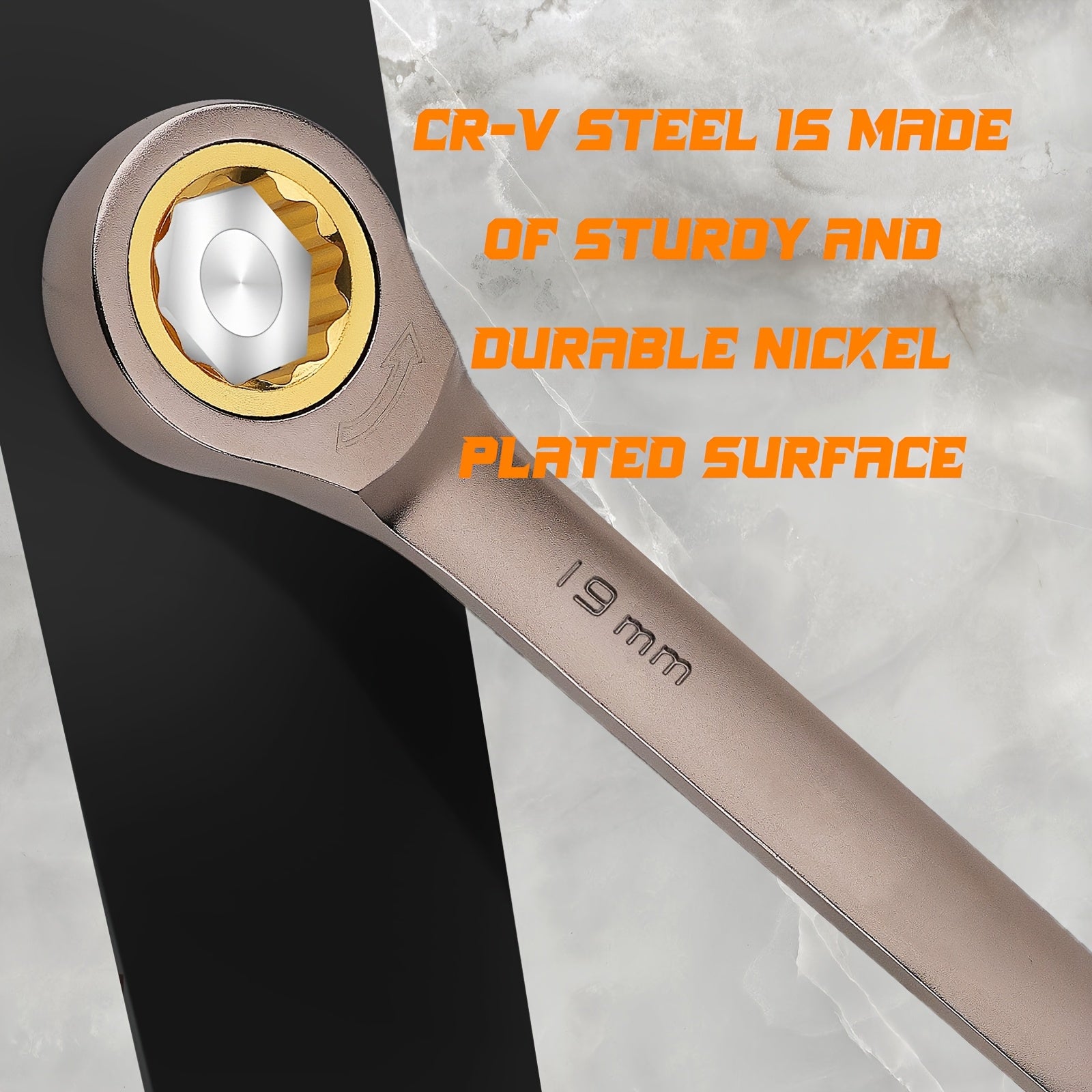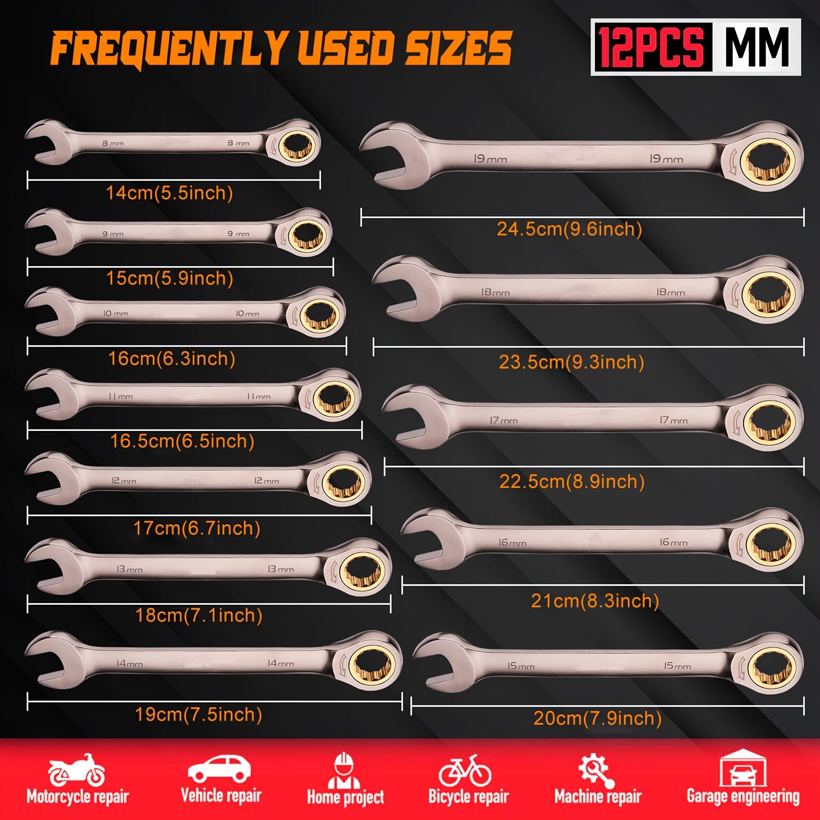 12-Piece Metric Ratcheting Combination Wrench Set 8mm-19mm Chrome Vanadium Steel