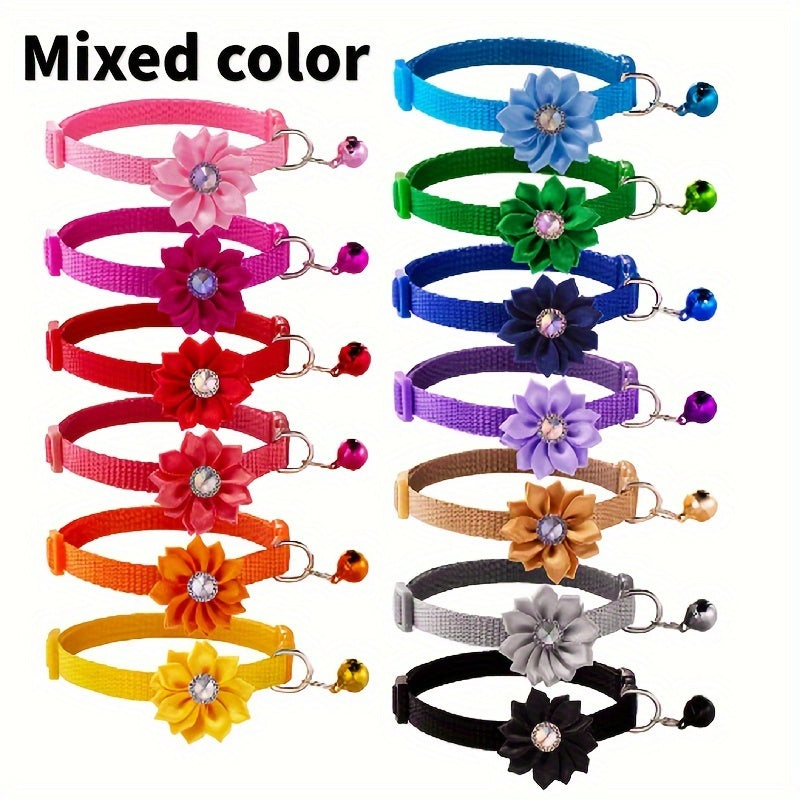 12 Sunflower Pet Collars with Bells Adjustable Polyester for Dogs and Cats Set