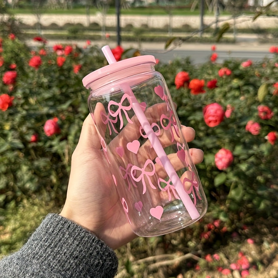 16oz Pink Bowknot Travel Mug with Straw and Lid BPA-Free Plastic