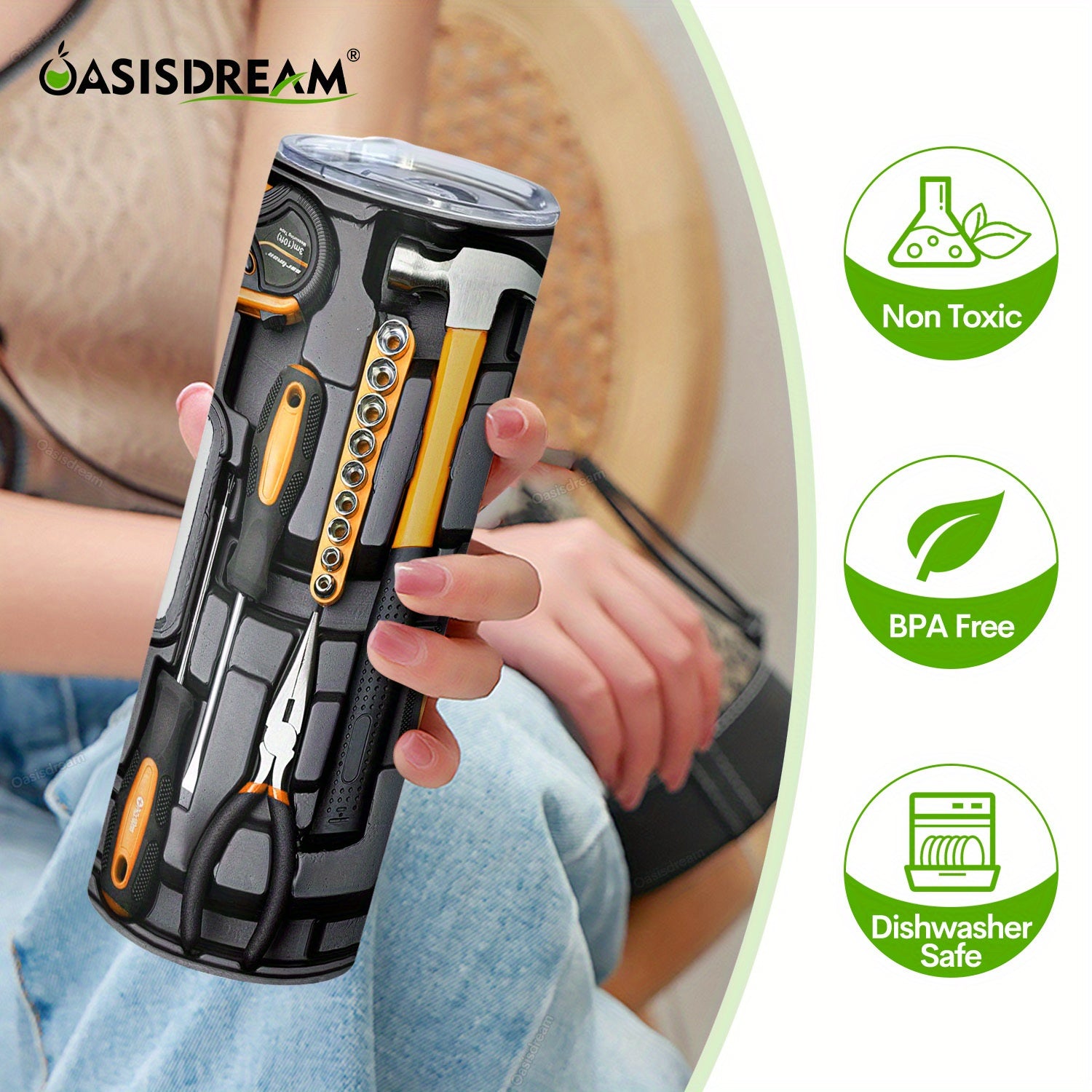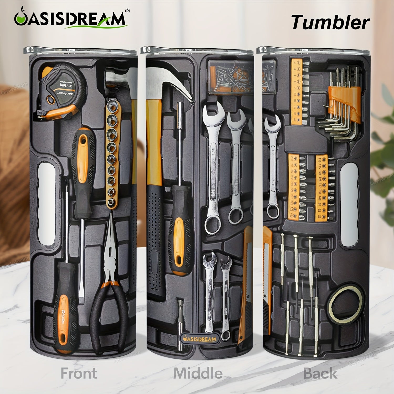 20oz Stainless Steel Insulated Tumbler with Printed Mechanic Tools Lid for Hot Cold Drinks