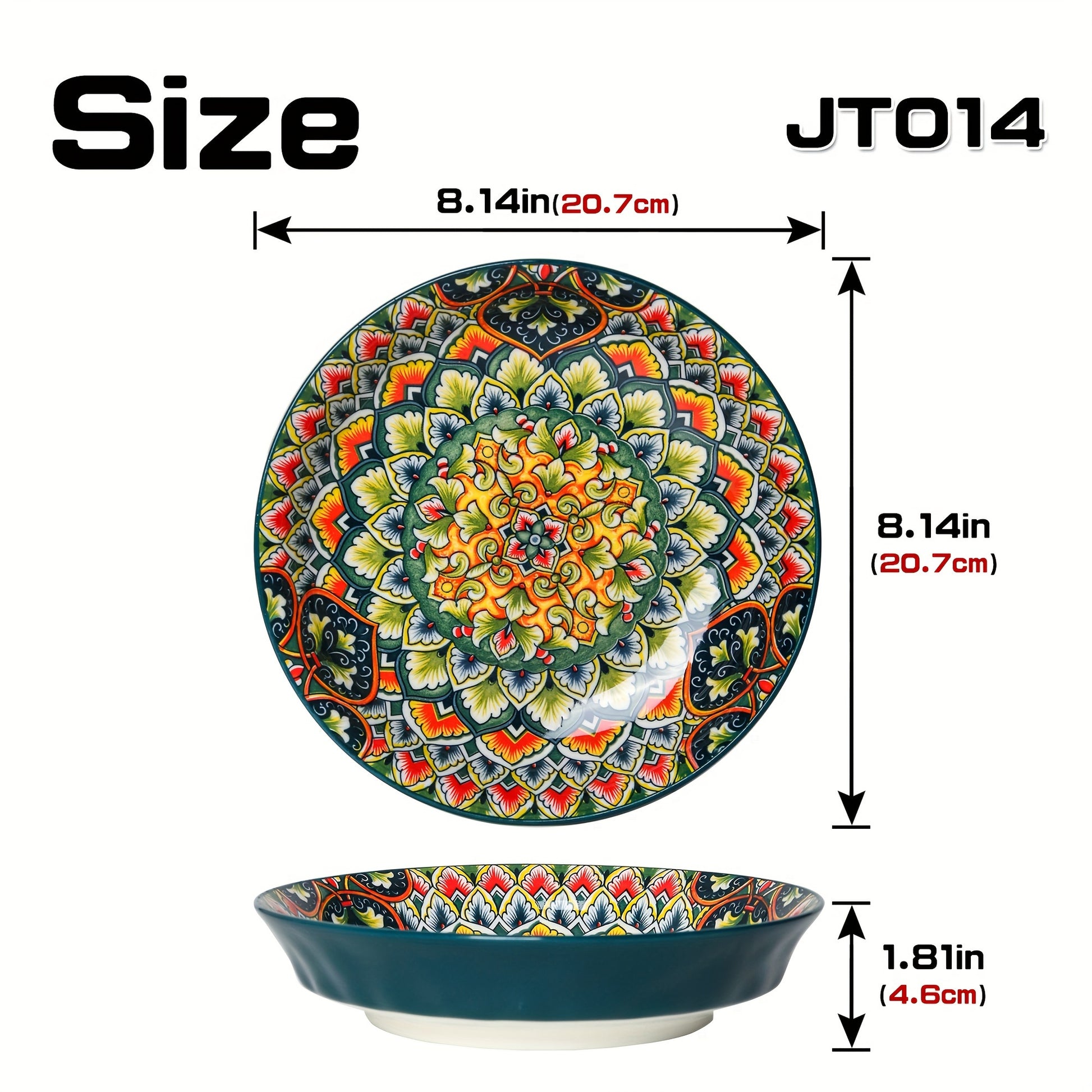 8-Inch Bohemian Ceramic Dinner Plate Microwave Safe for Home and Restaurant Use