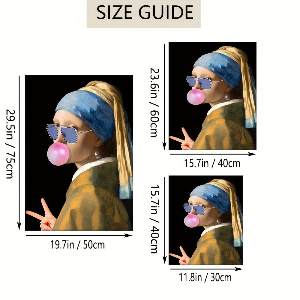 Funny Girl With Pearl Earrings Canvas Wall Art Modern Portrait Home Decor Gift