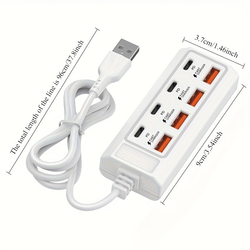 Multi Hole Power Strip with 4 USB and 4 PD Ports for Charging Devices