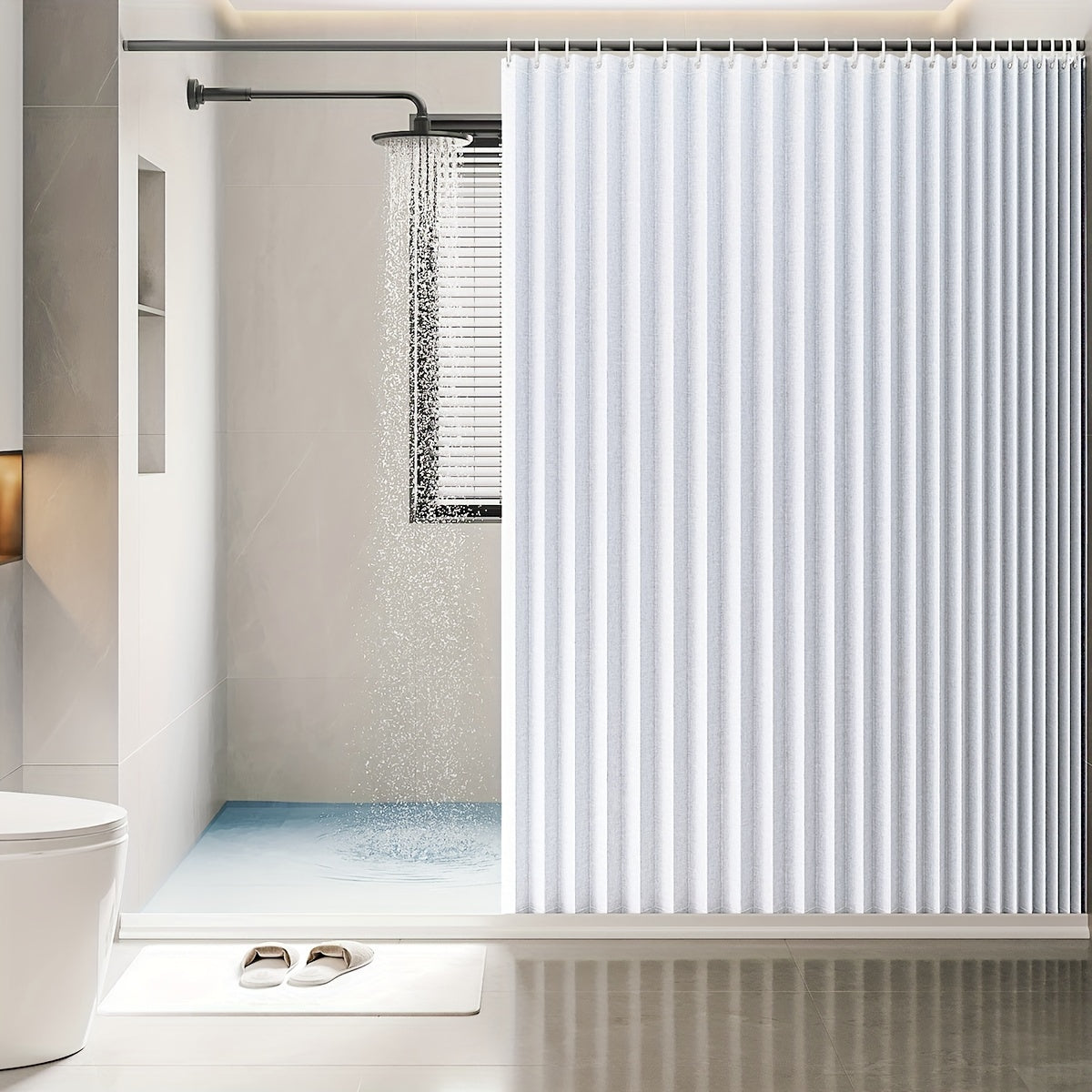 Folding Shower Curtain White Blue Moisture-Resistant 180cm x 180cm