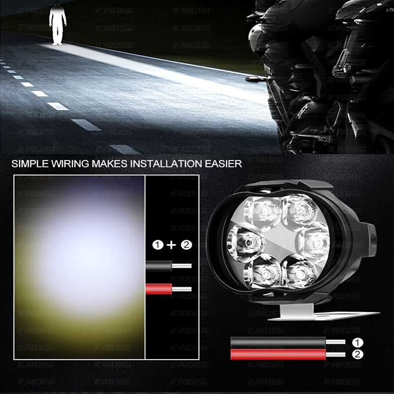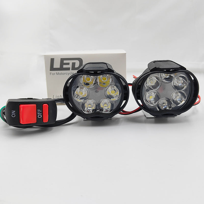 Set of 2 LED Motorcycle Lights with Switch 6500K White 1200LM for ATV UTV Scooter