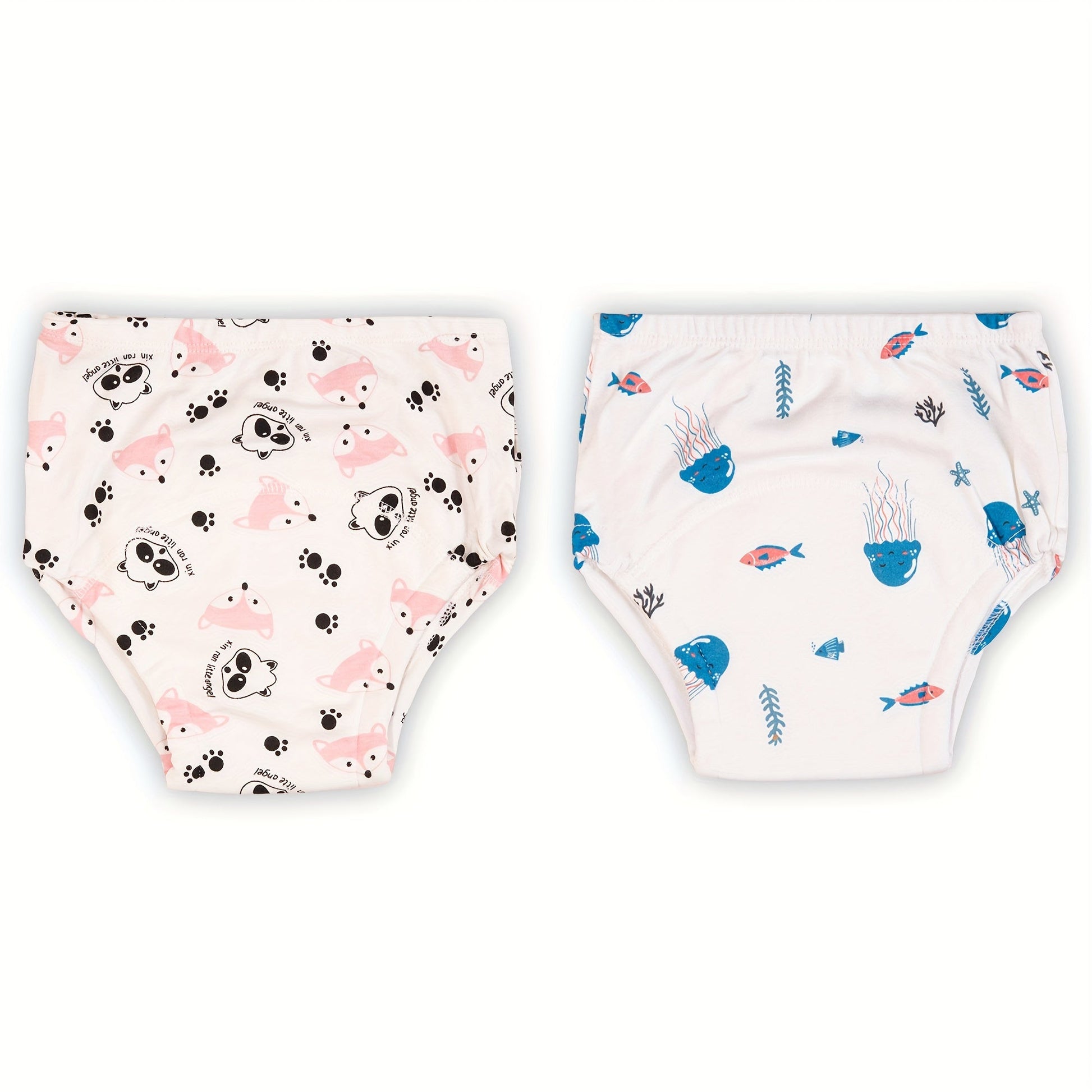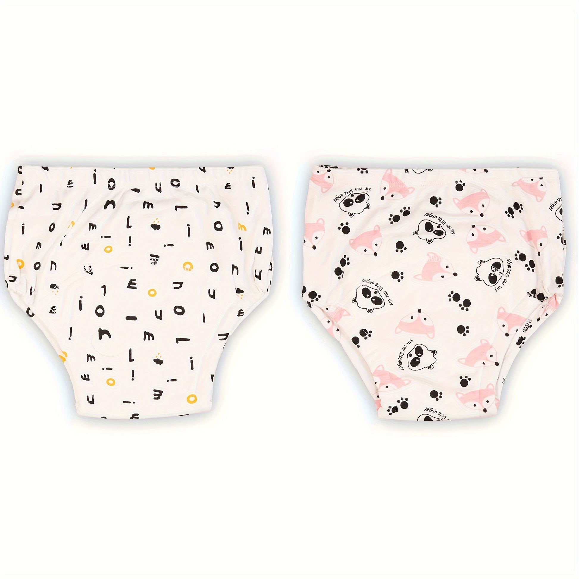 Girls Potty Training Pants Reusable Cloth Diapers with Cartoon Prints Pink White 2 Pairs