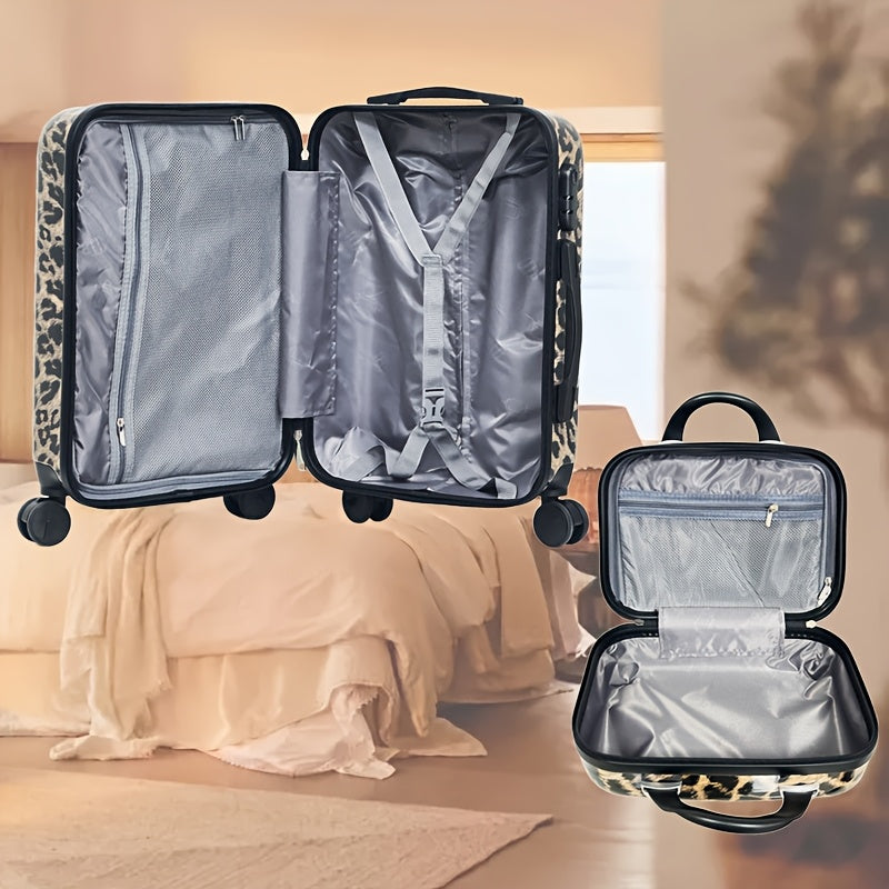 Leopard Print Luggage Set 2-Piece Hard Shell Carry-On and Cosmetic Case Black Durable ABS PC Spinner Locks