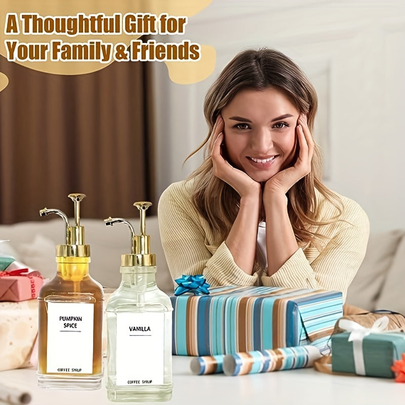 2 Pack 500ml Square Glass Dispenser Bottles for Syrup Milk Tea Soap White