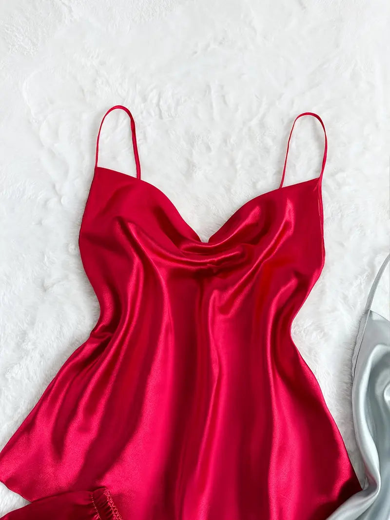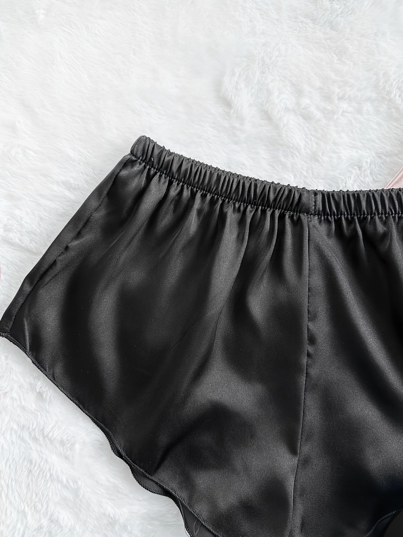 Women's Satin Pajama Set 2 Pieces Solid Color Summer Nightwear Backless Cami Top Shorts