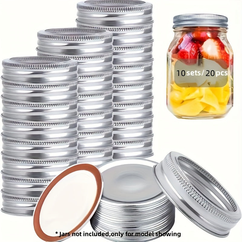 20 Pieces Can Lid Set for Regular and Wide Mouth Mason Jars with Silicone Sealing Rings