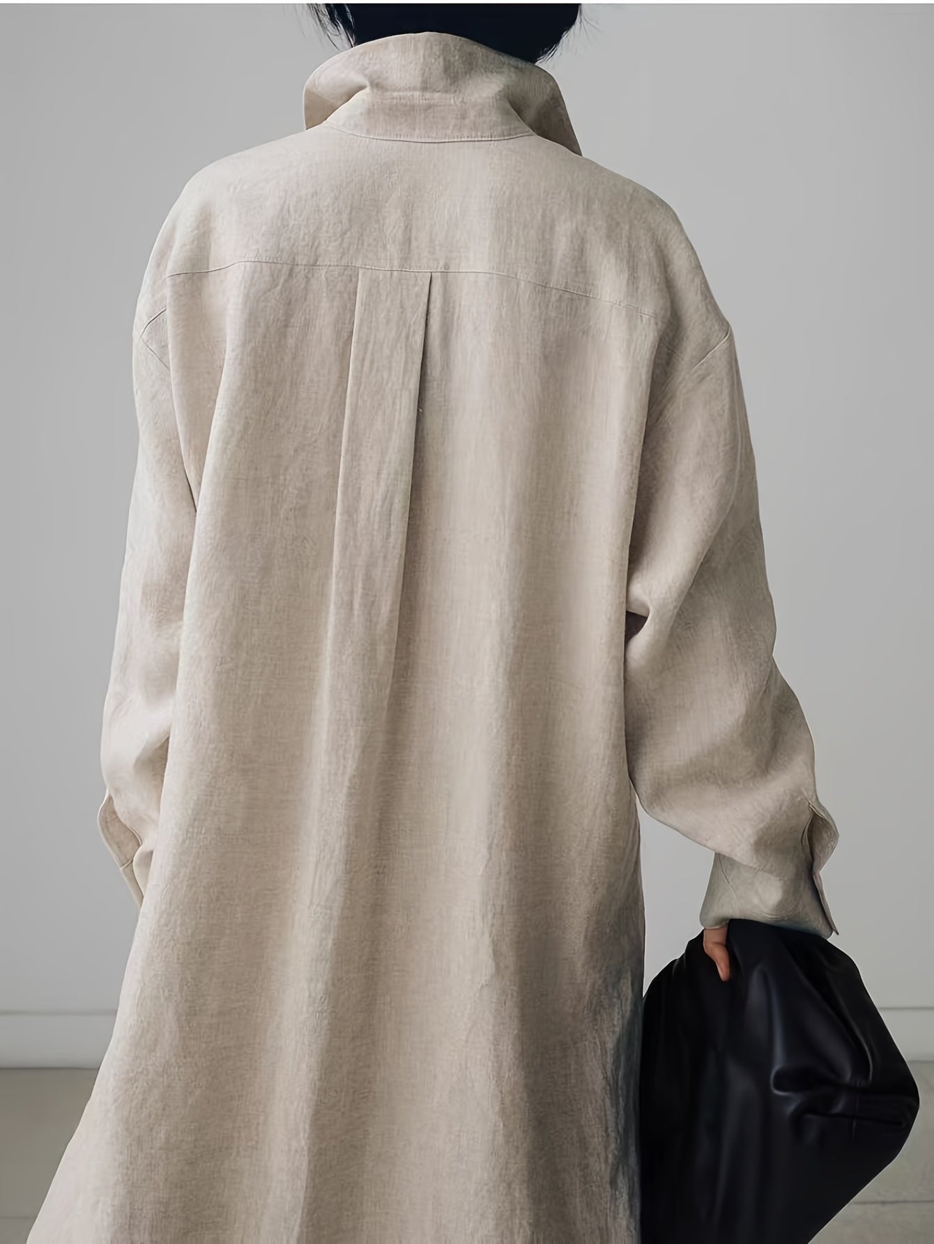 Women's Cotton Long Sleeve Shirt Dress with Split Button Design for Casual Outings